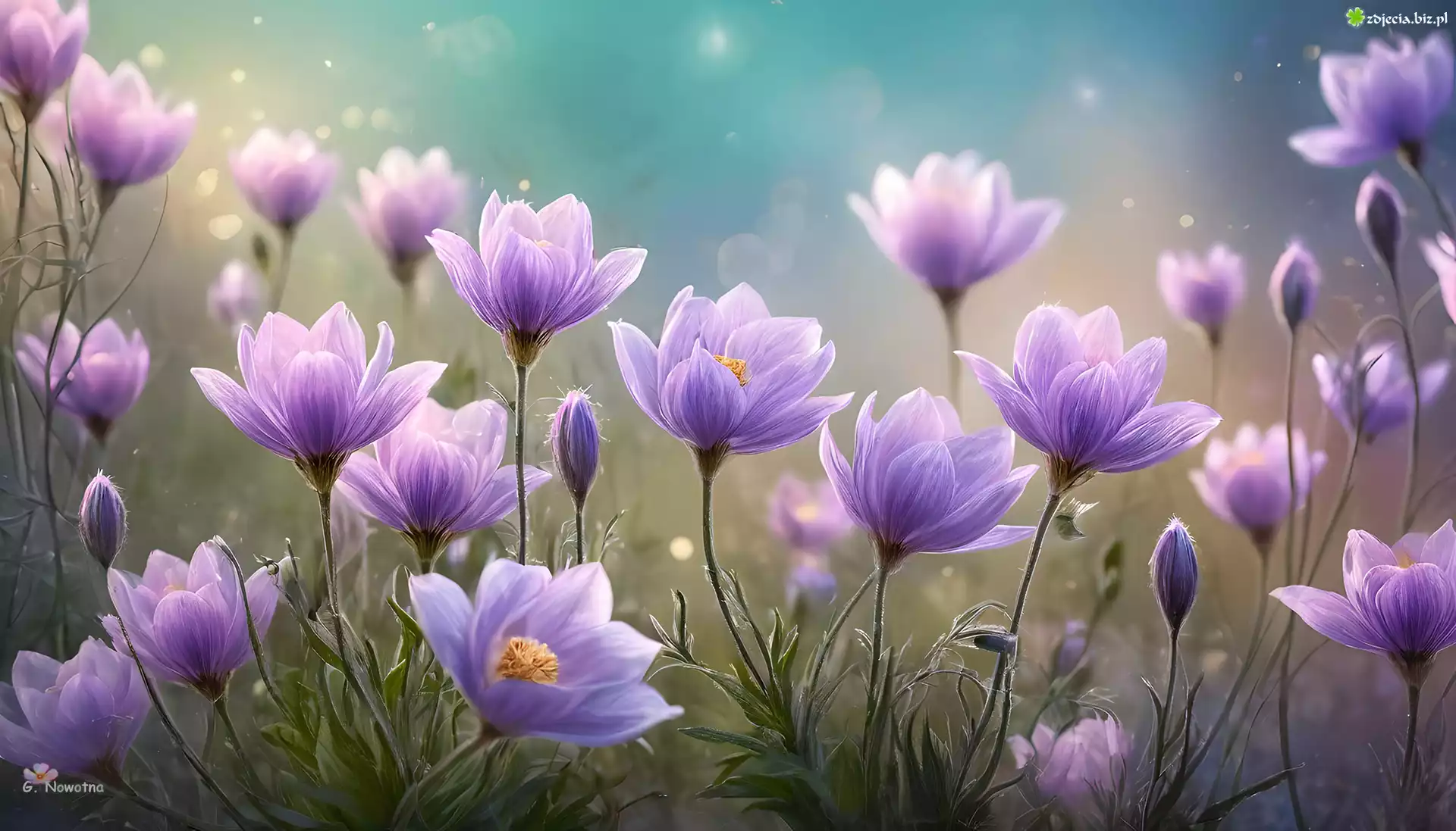 Zdjęcie Fioletowe, Rozkwitające, Kwiaty, Pąki, Grafika
