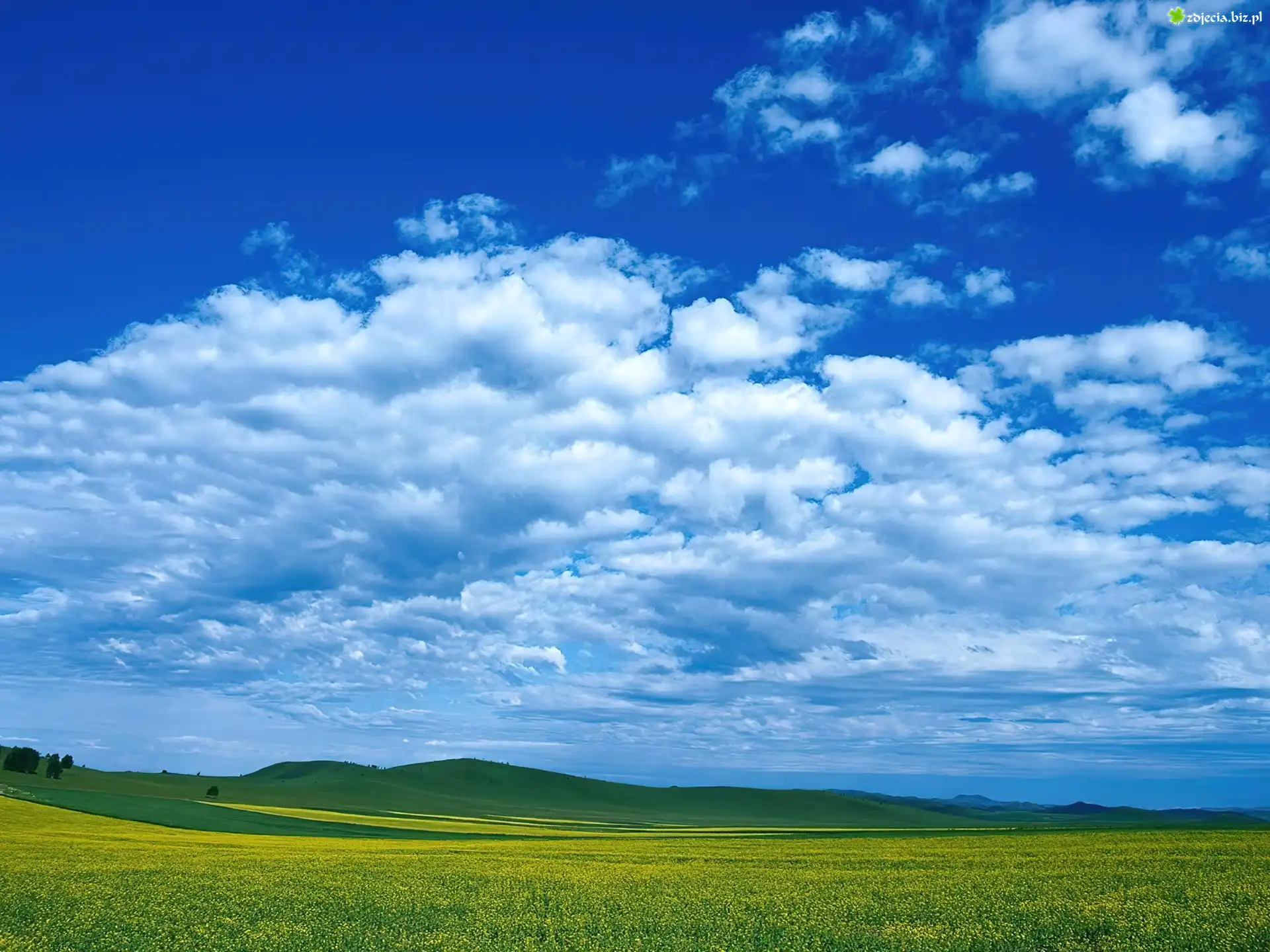 Zdjęcie Rozległe, Pola, Łąki, Niebo, Białe, Obłoki