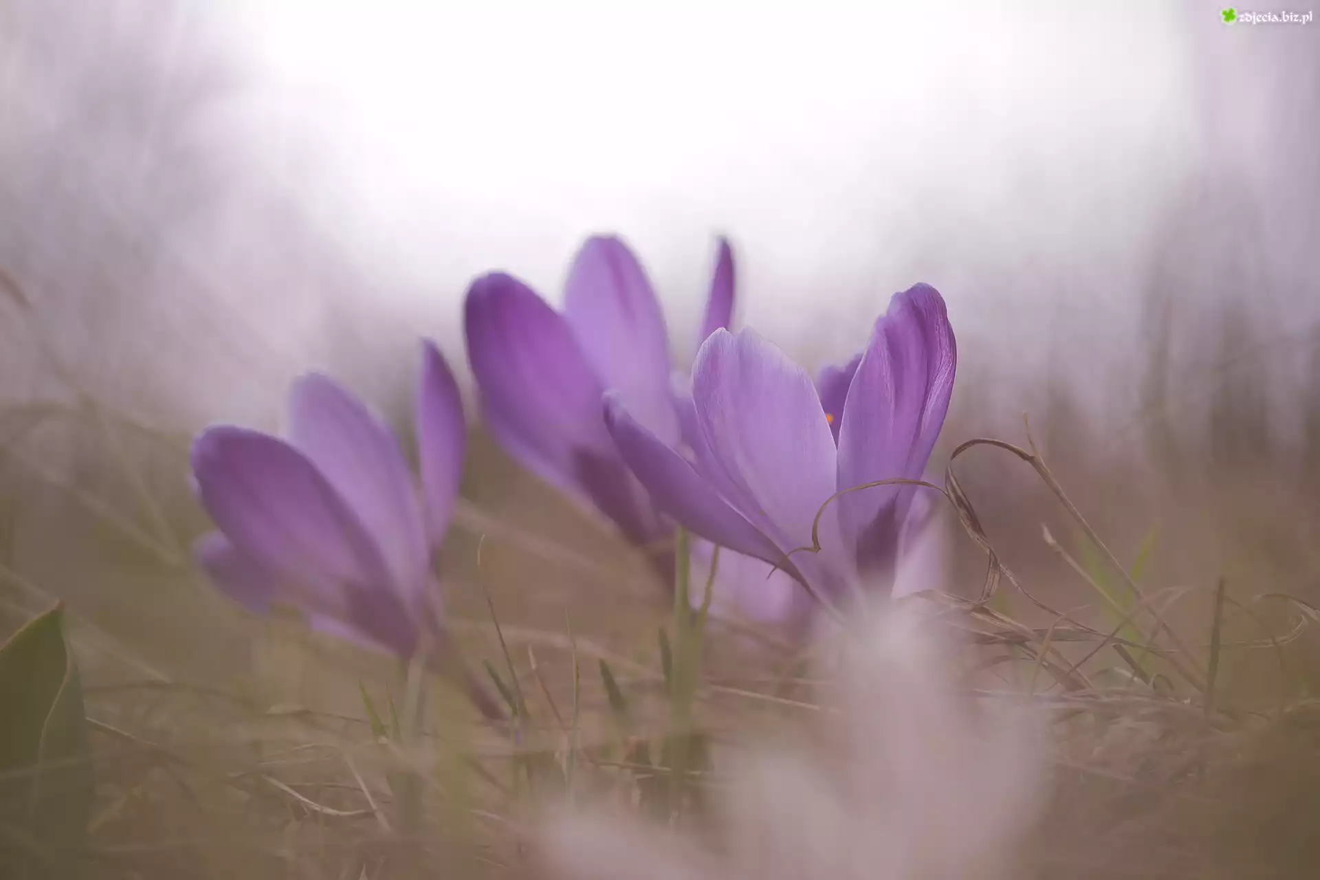 Zdjęcie, Fioletowe, Krokusy, Kwiaty, Rozmycie