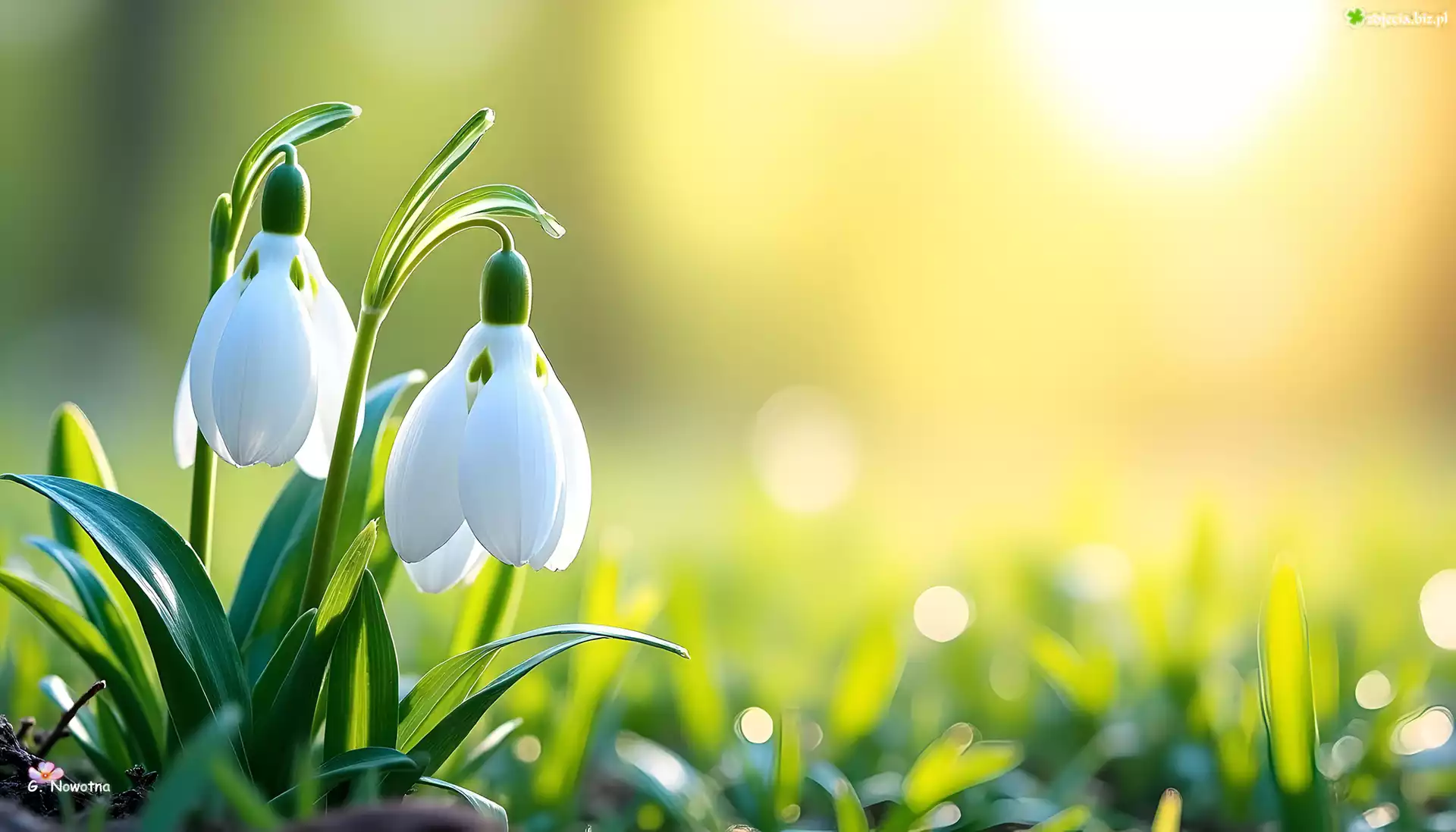 Zdjęcie Przebiśniegi, Białe, Kwiaty, Rozmyte, Tło, Grafika