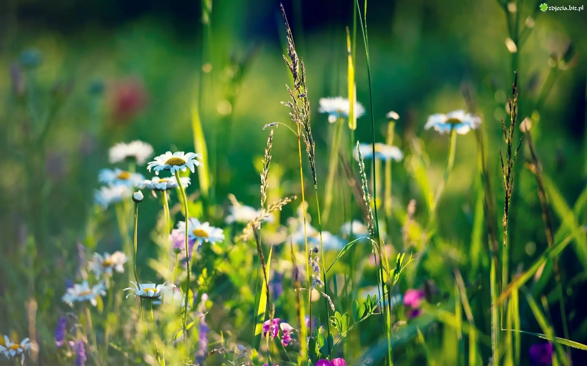 Zdjęcie Łąka, Rumianki, Trawa, Rozmyte Tło