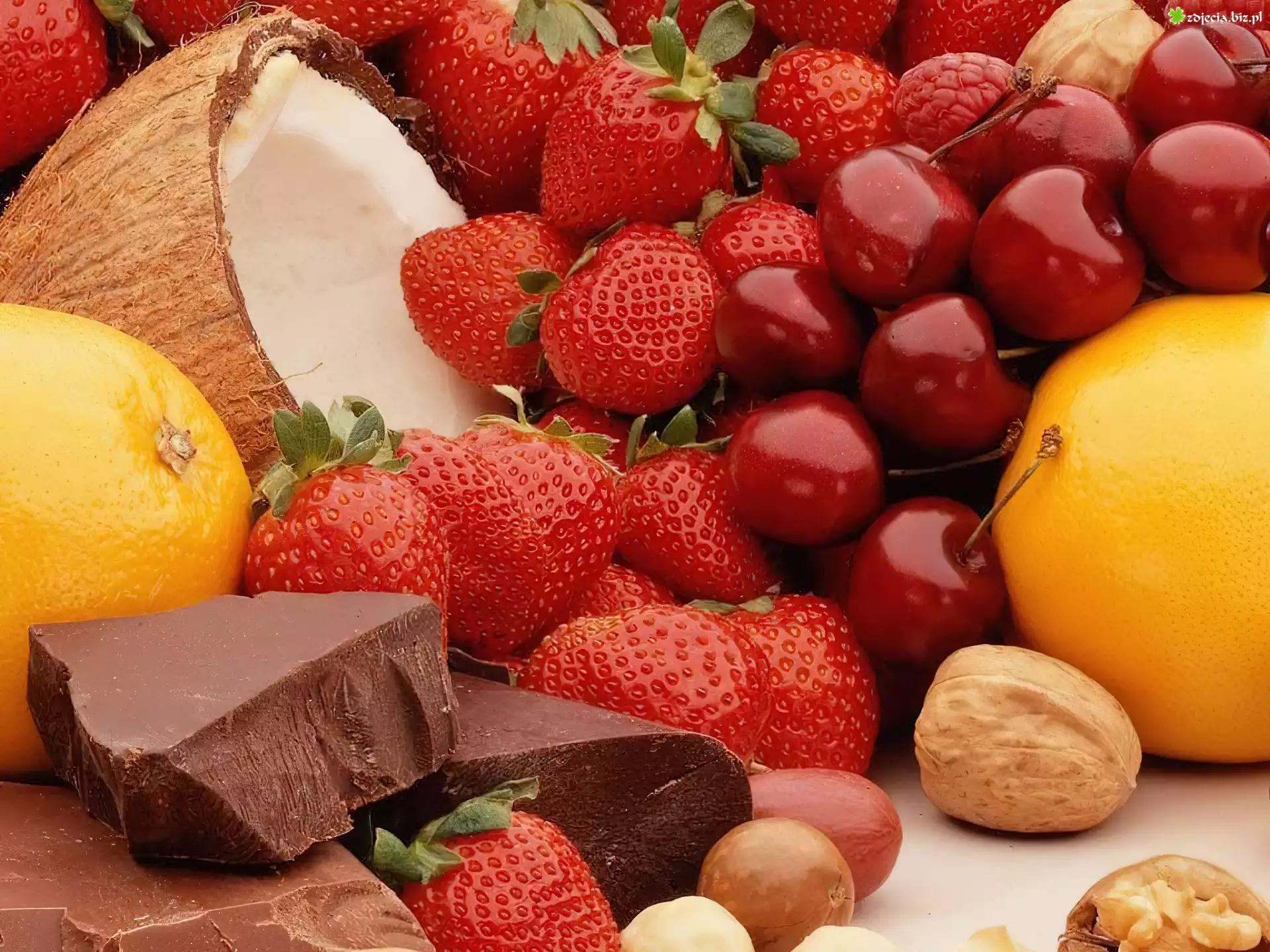 Zdjęcie Różne, Owoce, Orzechy, Kawałki, Czekolady