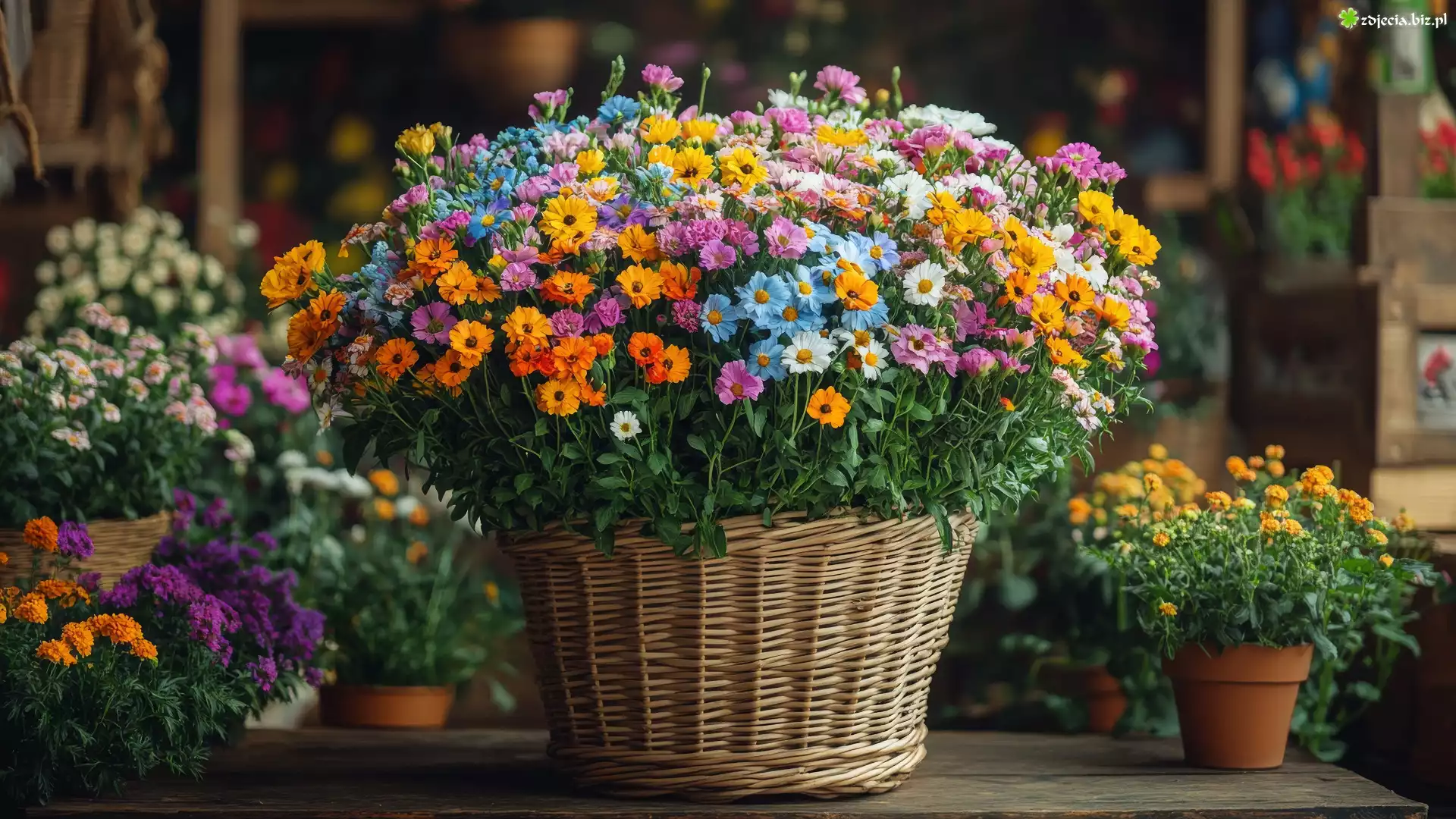 Zdjęcie Kwiaty, Różne, Kolorowe, Wiklinowy, Koszyk