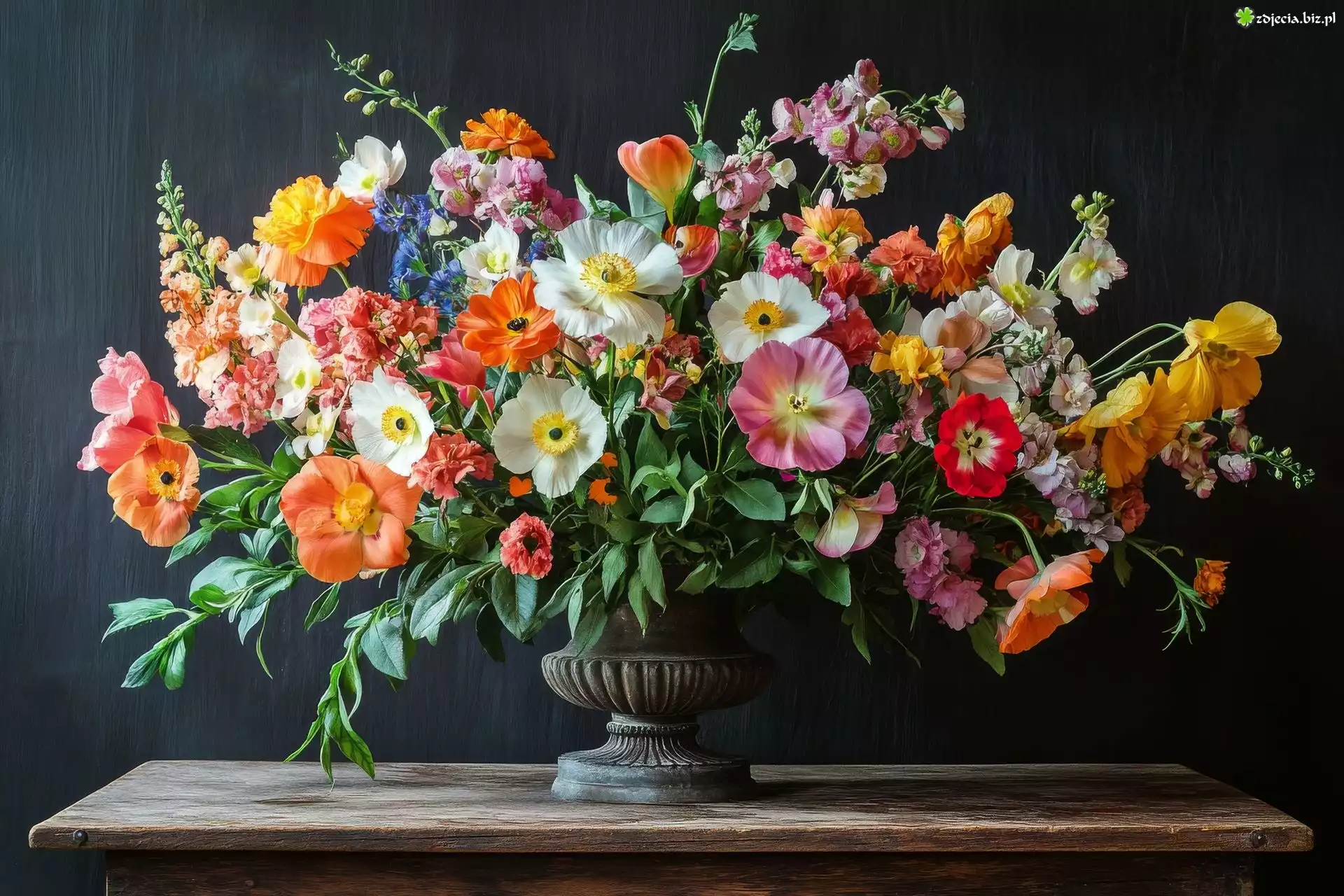 Zdjęcie Kwiaty, Różnokolorowe, Waza, Stół, Bukiet