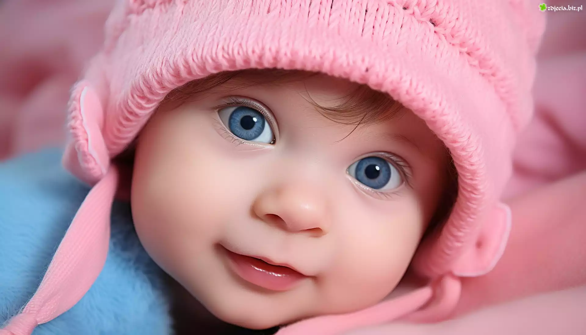 Zdjęcie Dziecko, Różowa, Czapka, Niebieskie, Oczy