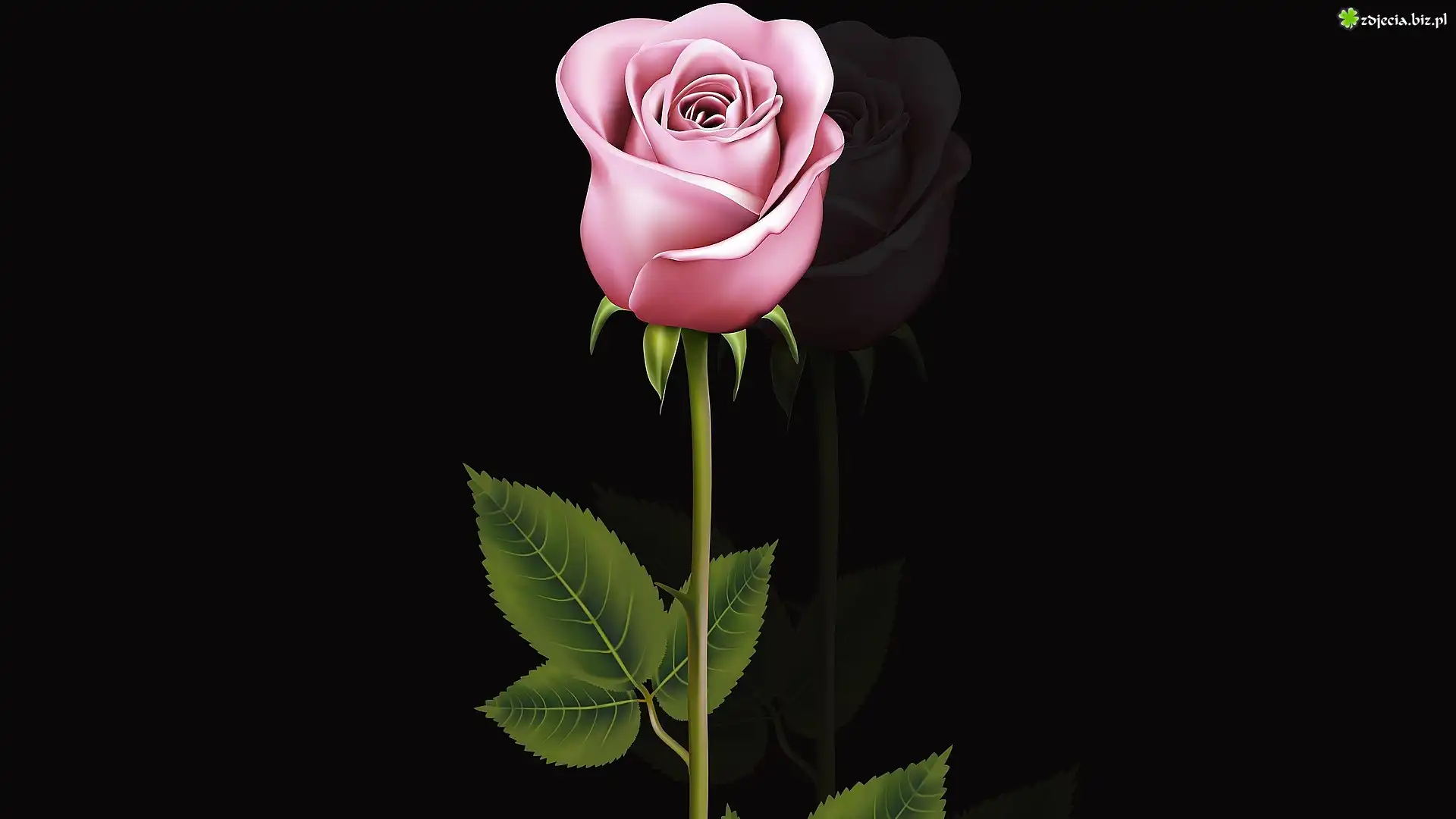 Zdjęcie Kwiat, Różowa, Róża, Listki, Czarne, Tło, 2D