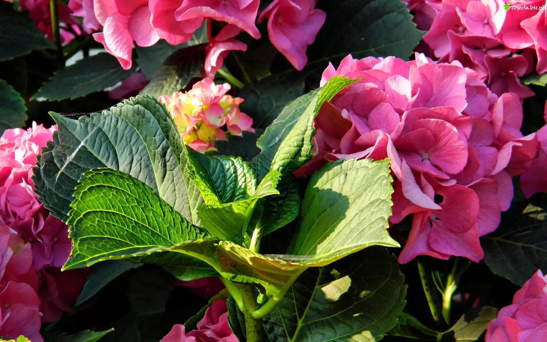 Zdjęcie Różowa, Hortensja, Zielone, Liście