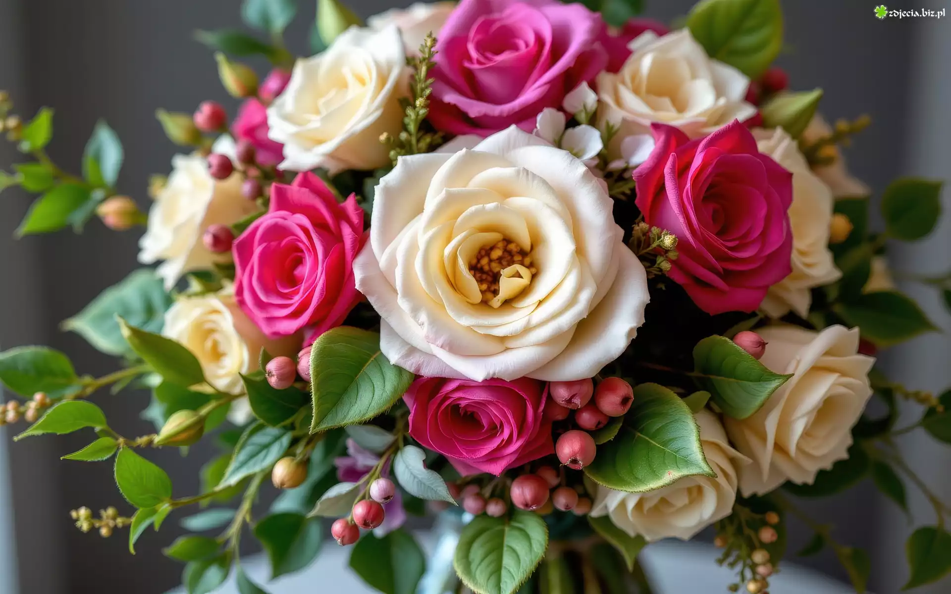 Zdjęcie Kwiaty, Róże, Białe, Różowe, Bukiet, AI