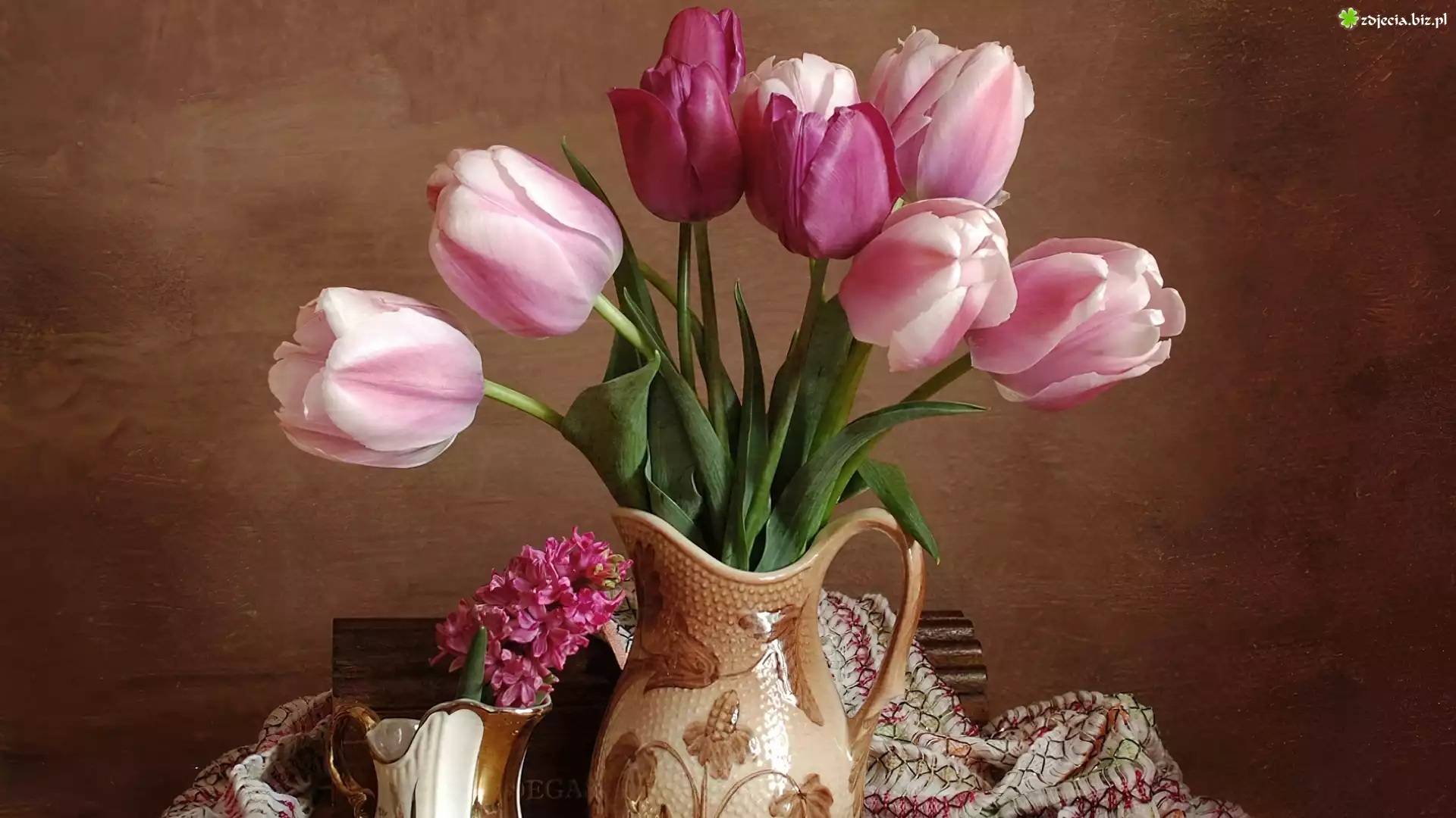 Zdjęcie Różowe, Tulipany, Gliniane, Dzbanki