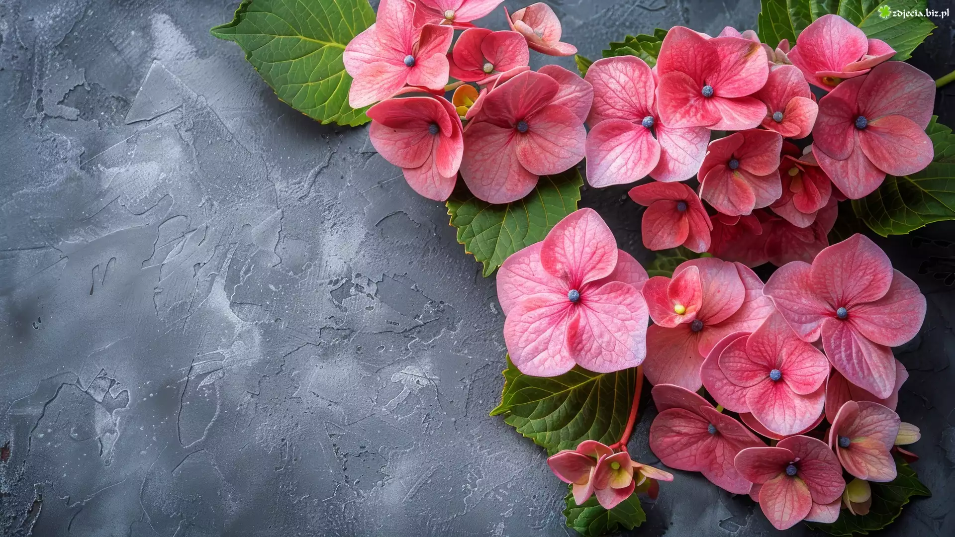 Zdjęcie, Kwiaty, Różowe, Hortensje, Ciemne, Tło