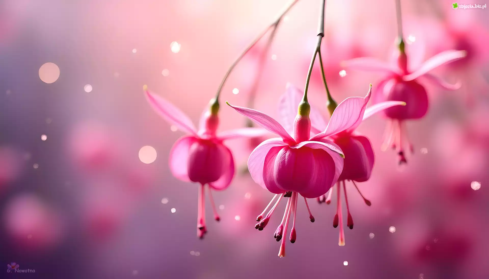 Zdjęcie Fuksja, Różowe, Kwiaty, Grafika AI