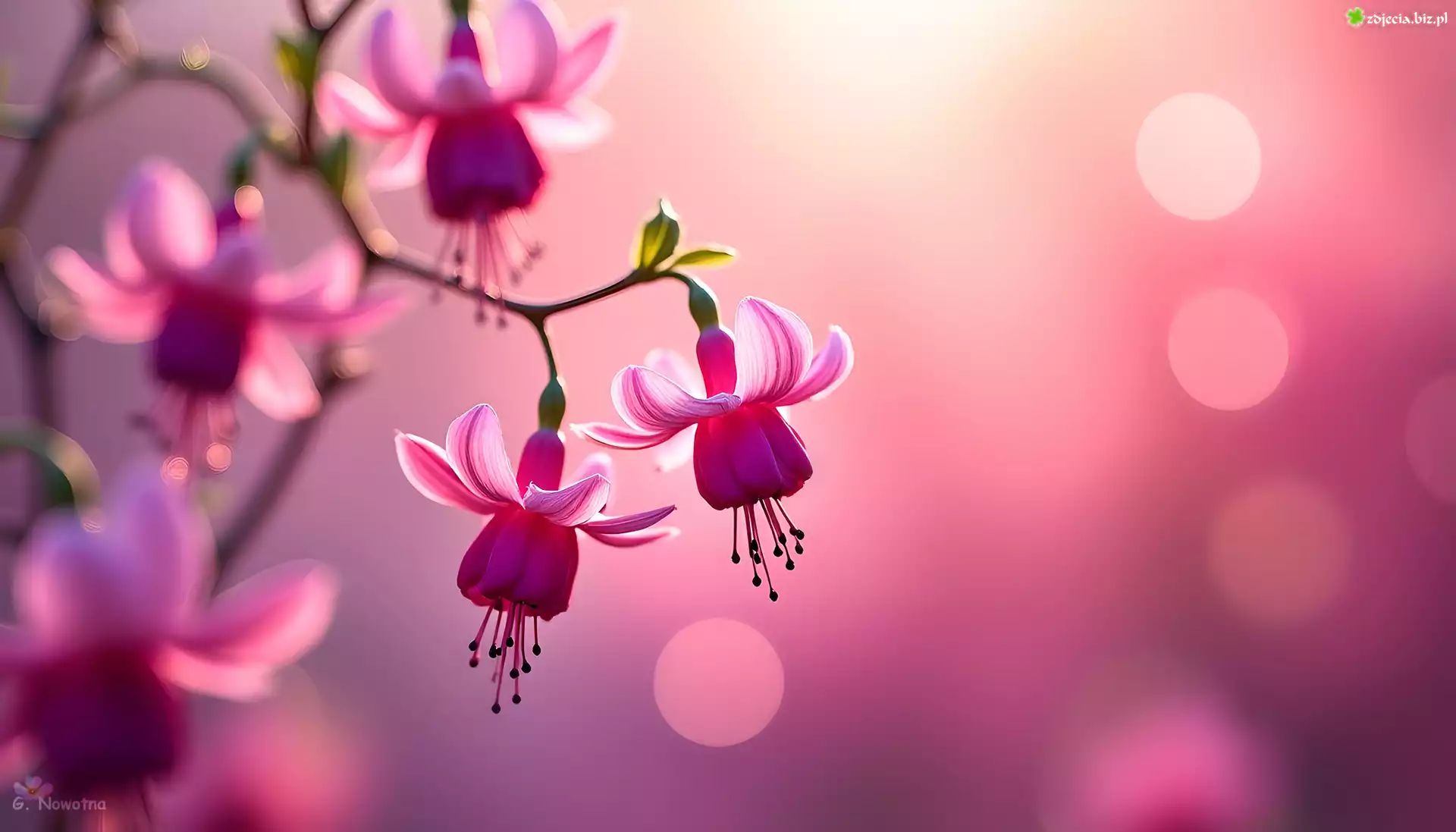 Zdjęcie Fuksje, Różowe, Kwiaty, Grafika AI
