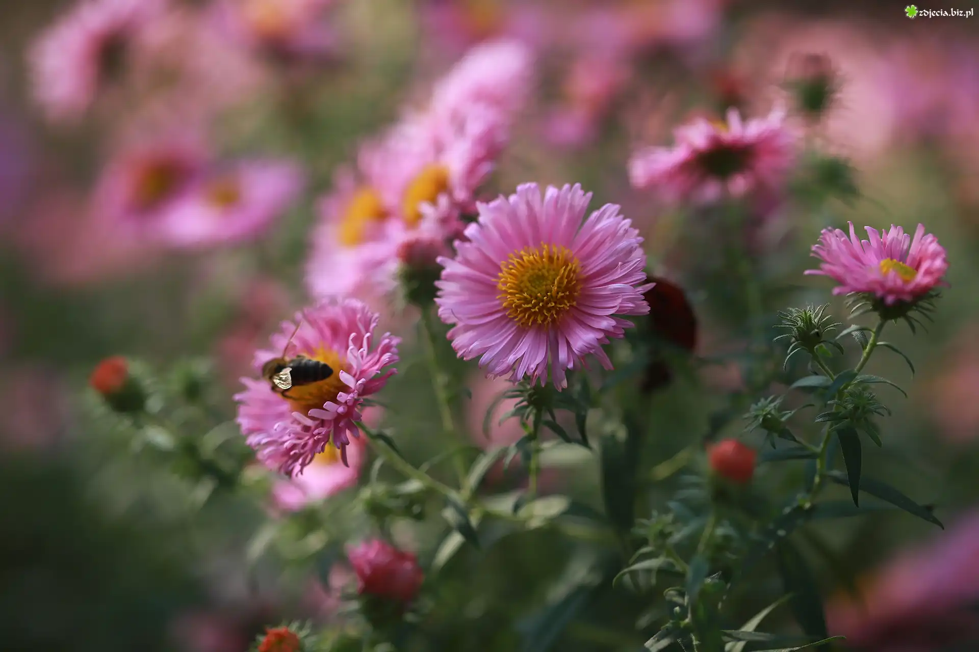 Zdjęcie Różowe, Astry, Kwiaty, Owad