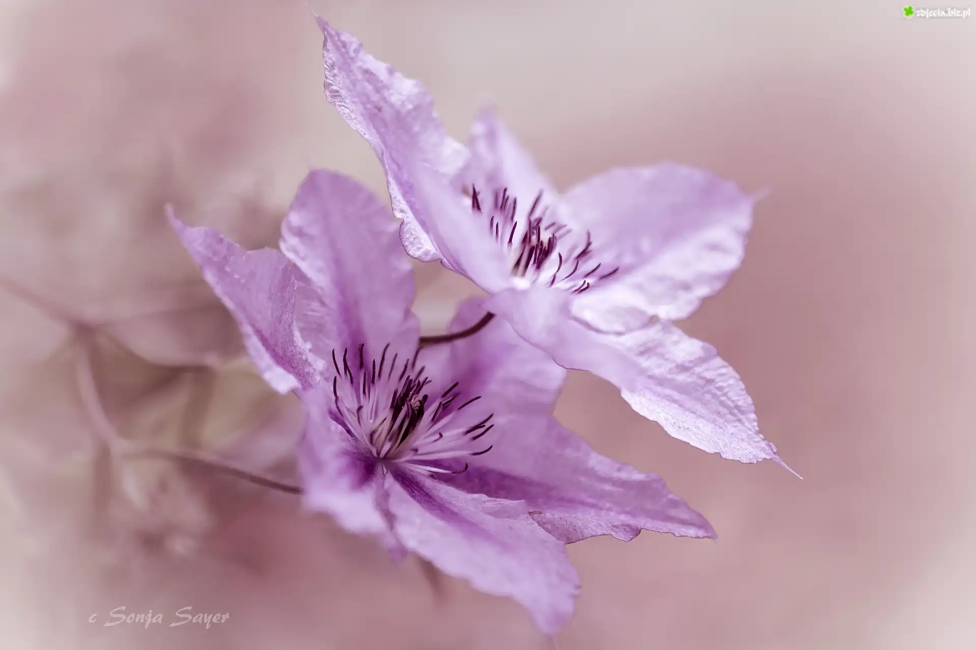 Zdjęcie Różowe, Dwa, Kwiaty, Clematis, Powojnik