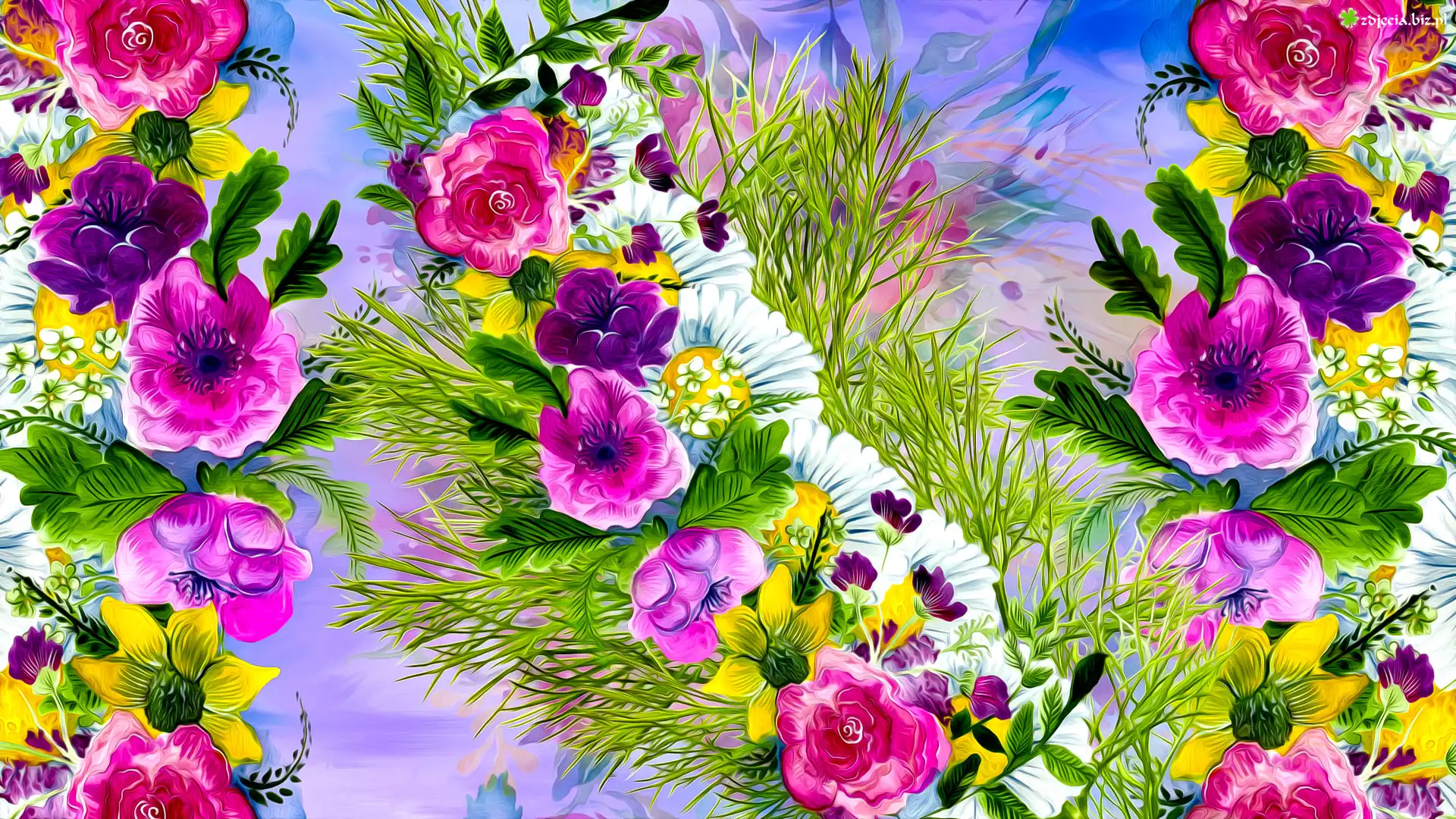 Zdjęcie Różowe, Fioletowe, Kwiaty, Grafika