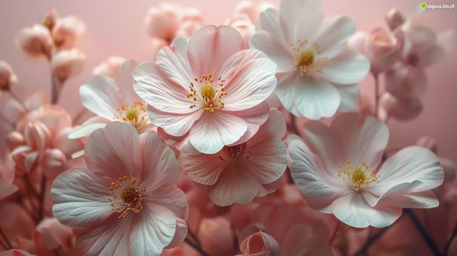 Zdjęcie Biało-różowe, Kwiaty, Gałązki, Pąki