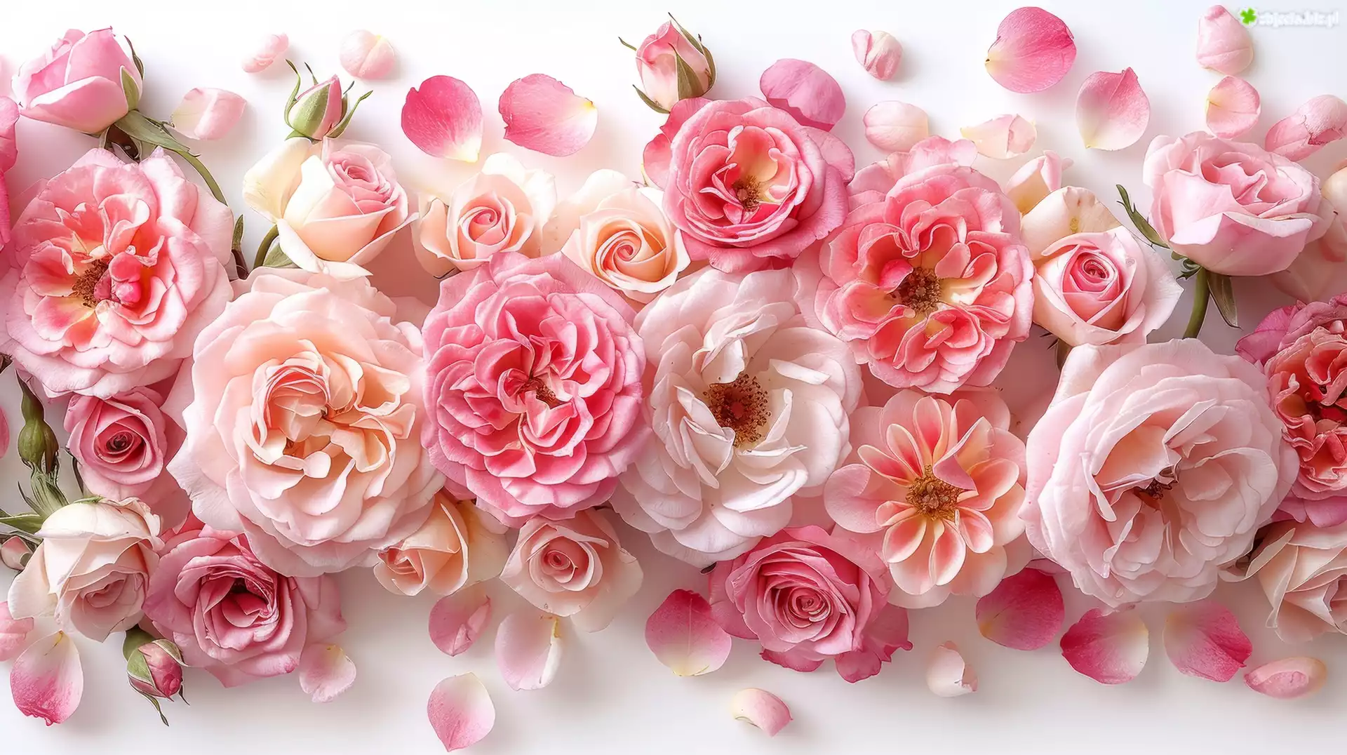 Zdjęcie Kompozycja, Różowe, Kwiaty, Róże, Płatki
