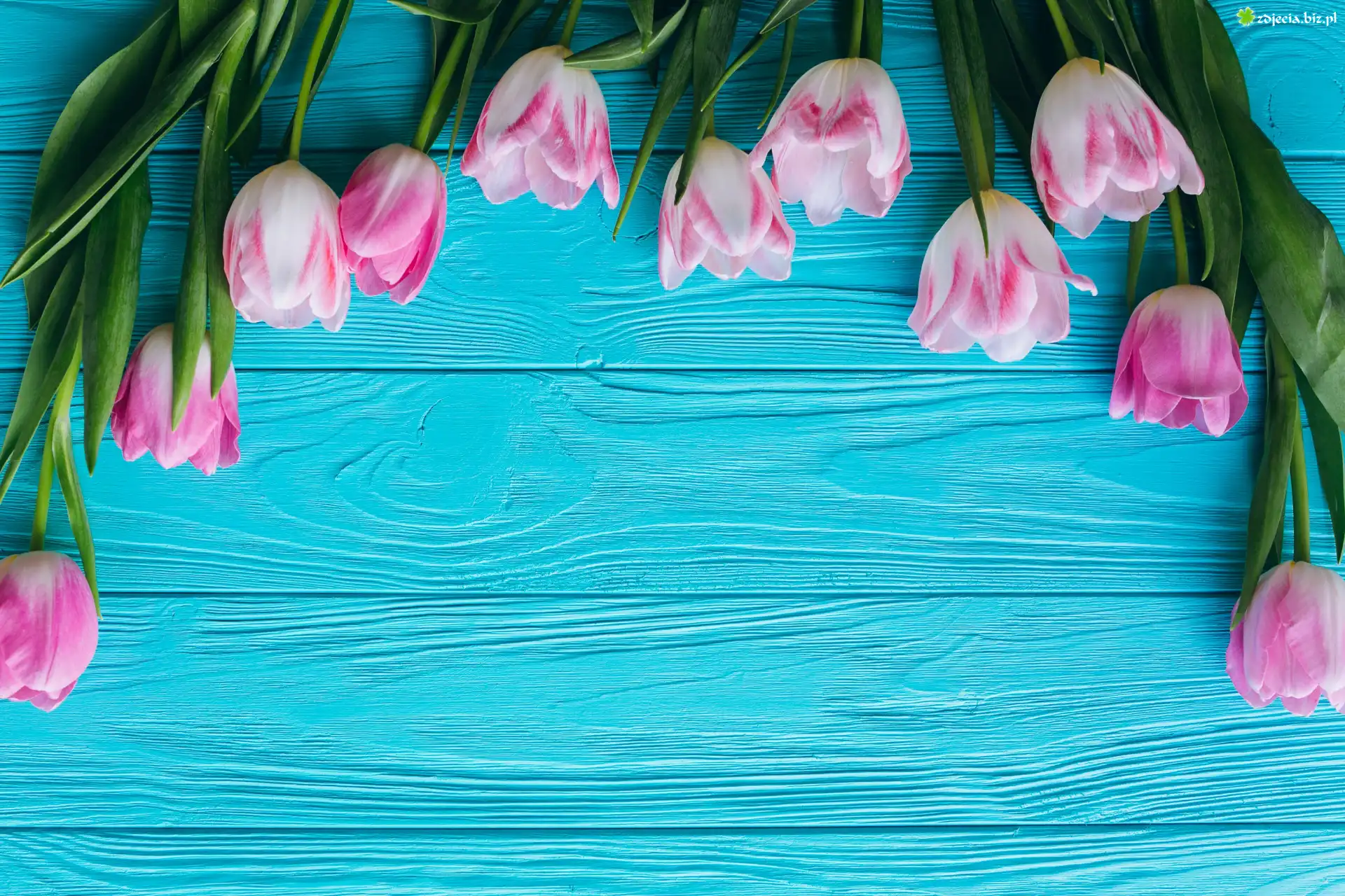 Zdjęcie Różowe, Tulipany, Niebieskie, Deski