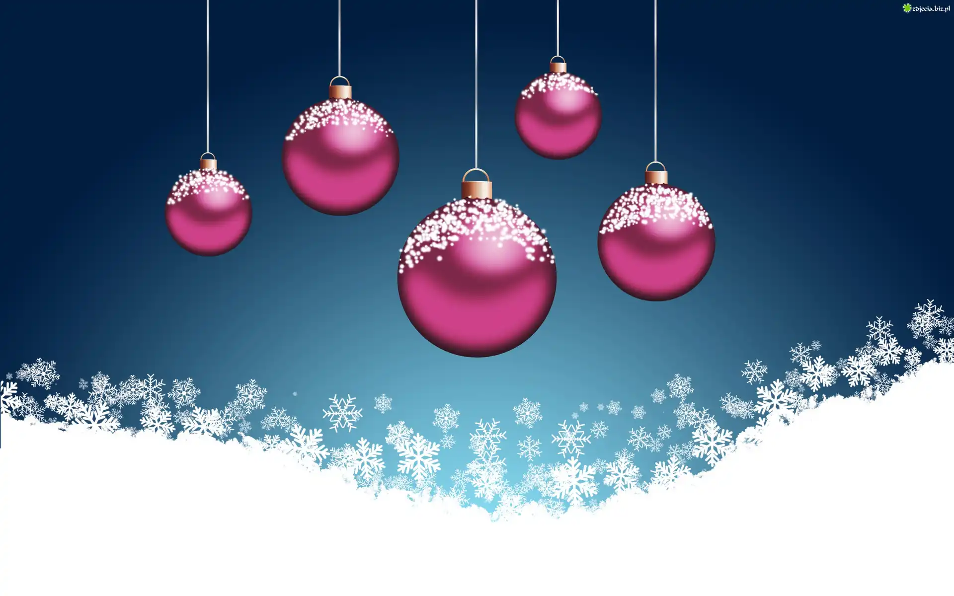 Zdjęcie Różowe, Bombki, Niebieskie, Tło, Śnieżne, Gwiazdki