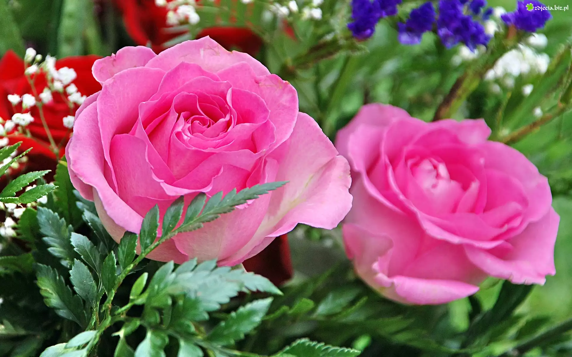 Różnokolorowa, Róża Pomarańczowa, Róża, Ścięty, Kwiat Róża, Pąk, Łodyga Bukiet, Róż, Koszyk Róża, Pąk, Liście Kolorowe, Różyczki, Dwa, Prezenciki Wodna, Róża Kolorowa, Róża Herbaciana, Róża, Woda Różyczki, Płatki, Wstążka Żółta, Róża, Makro Rozwinięta, Różowa, Róża Róża, Odcień, Czerni Czerwona, Róża, Perłowe, Korale