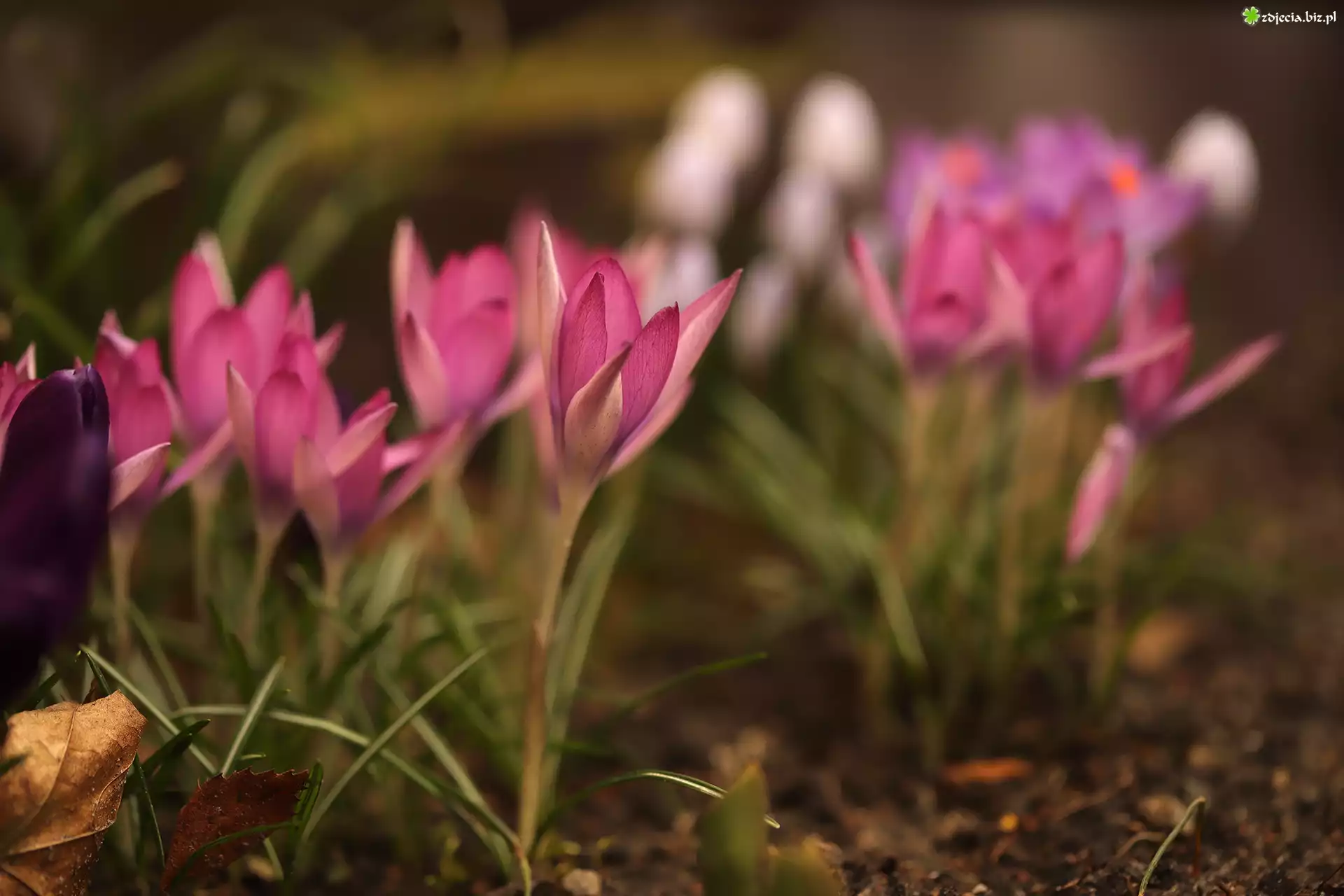 Zdjęcie Różowe, Krokusy, Kwiaty, Rozmyte tło