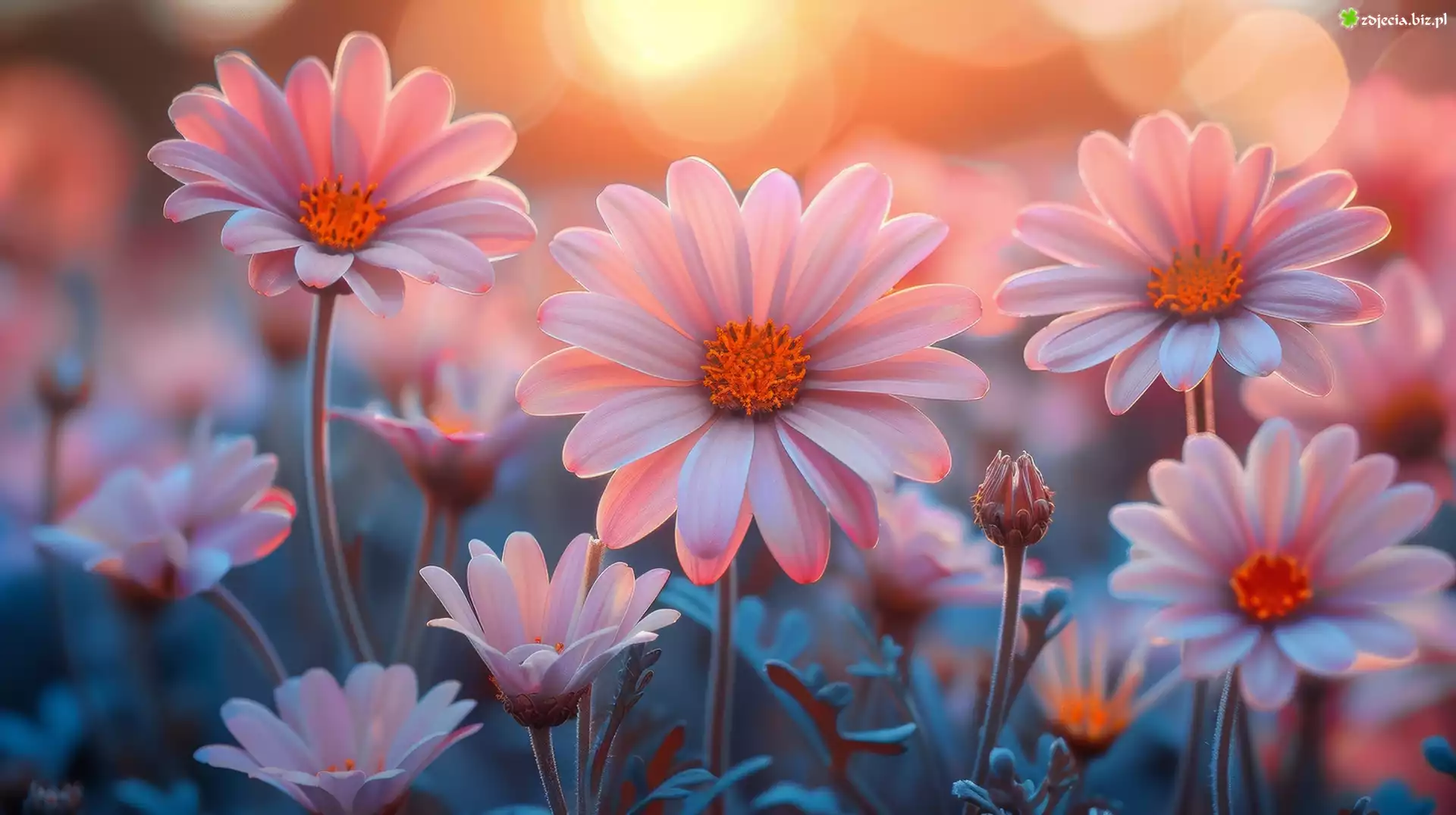 Zdjęcie, Kwiaty, Różowe, Stokrotki afrykańskie, Blask