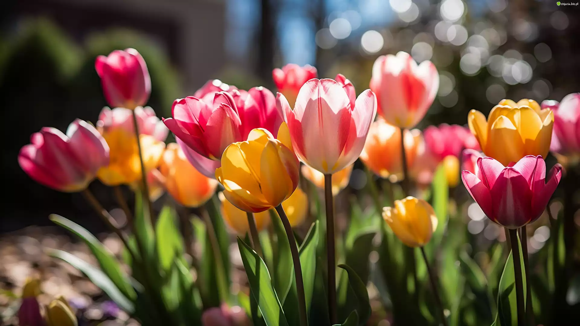 Zdjęcie Tulipany, Kolorowe, Kwiaty, Rozświetlone