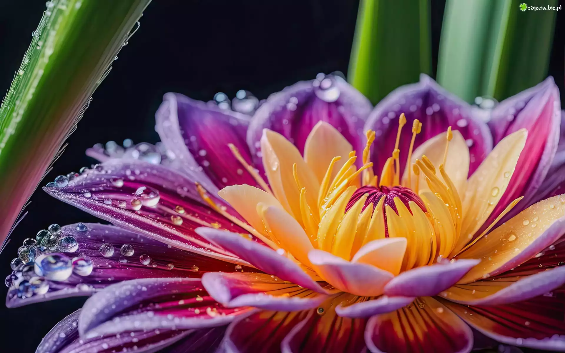 Zdjęcie Dalia, Rozwinięty, Kwiat, Krople, Grafika