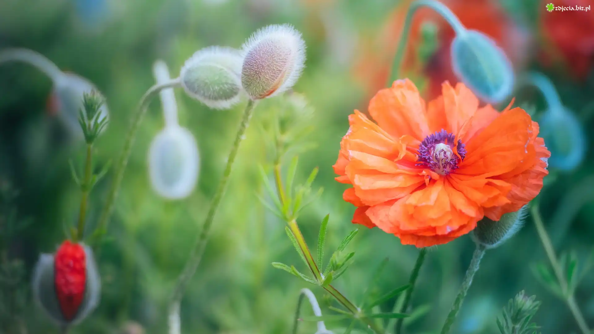 Zdjęcie Rozwinięty, Kwiat, Czerwony, Mak, Pąki