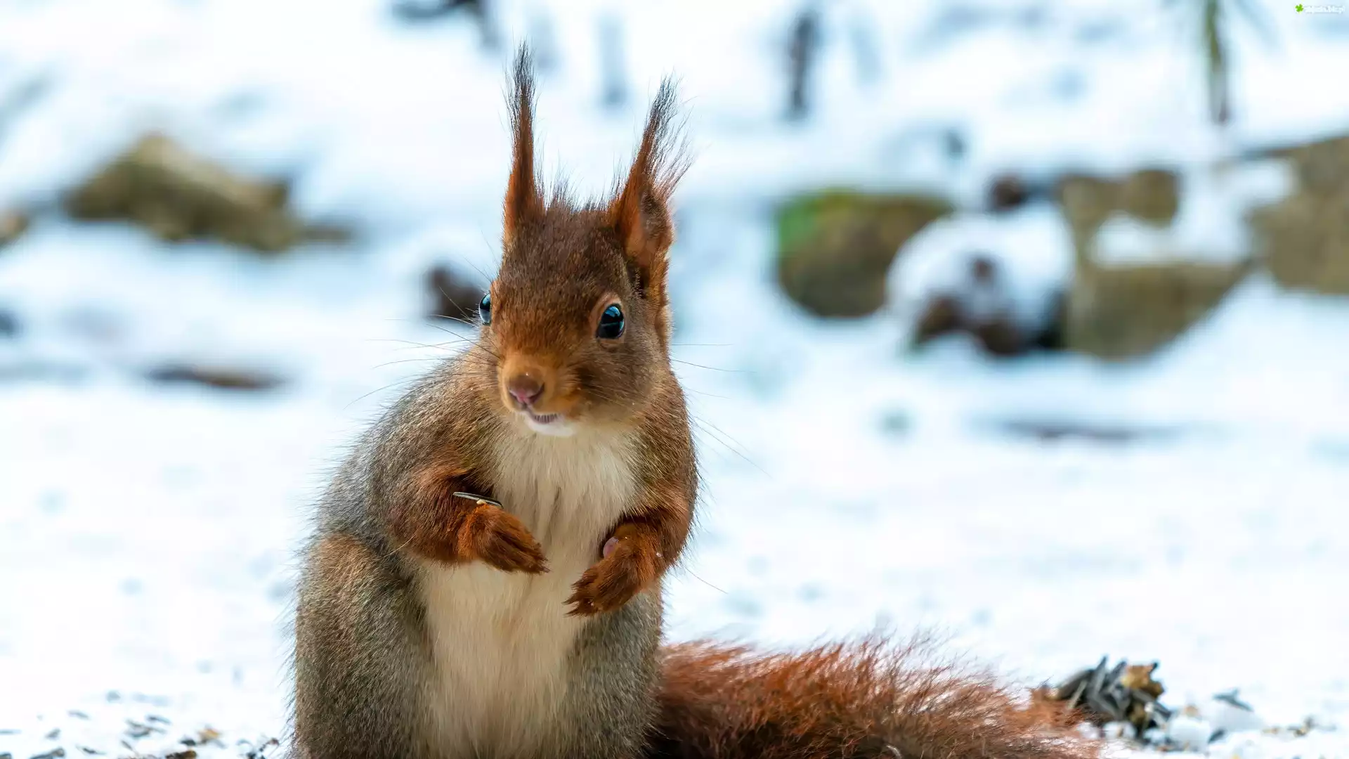 Zdjęcie, Ruda, Wiewiórka, Śnieg