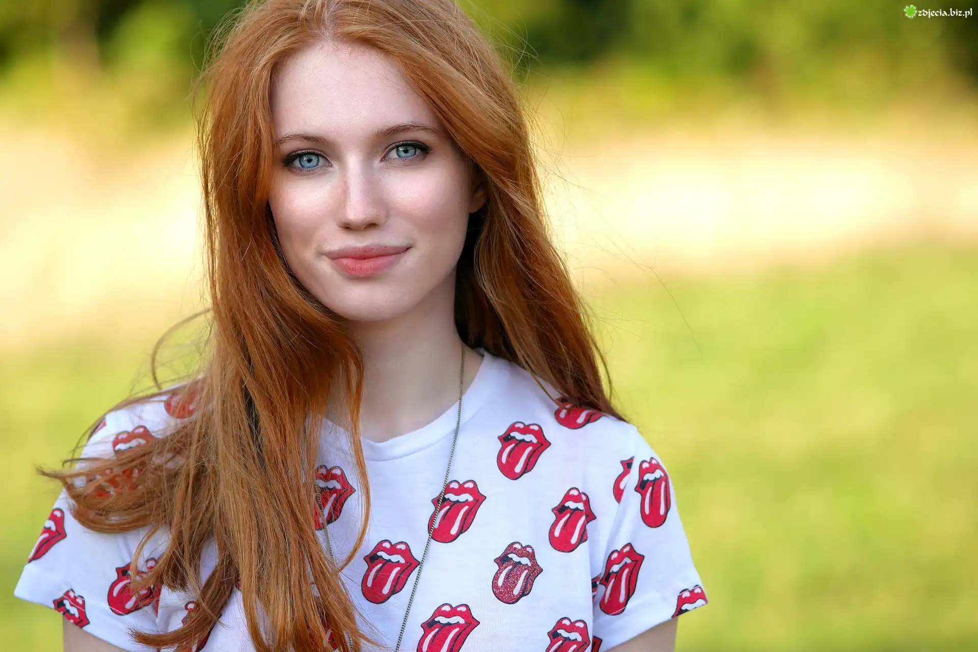 Zdjęcie, Uśmiechnięta, Rudowłosa, Kobieta