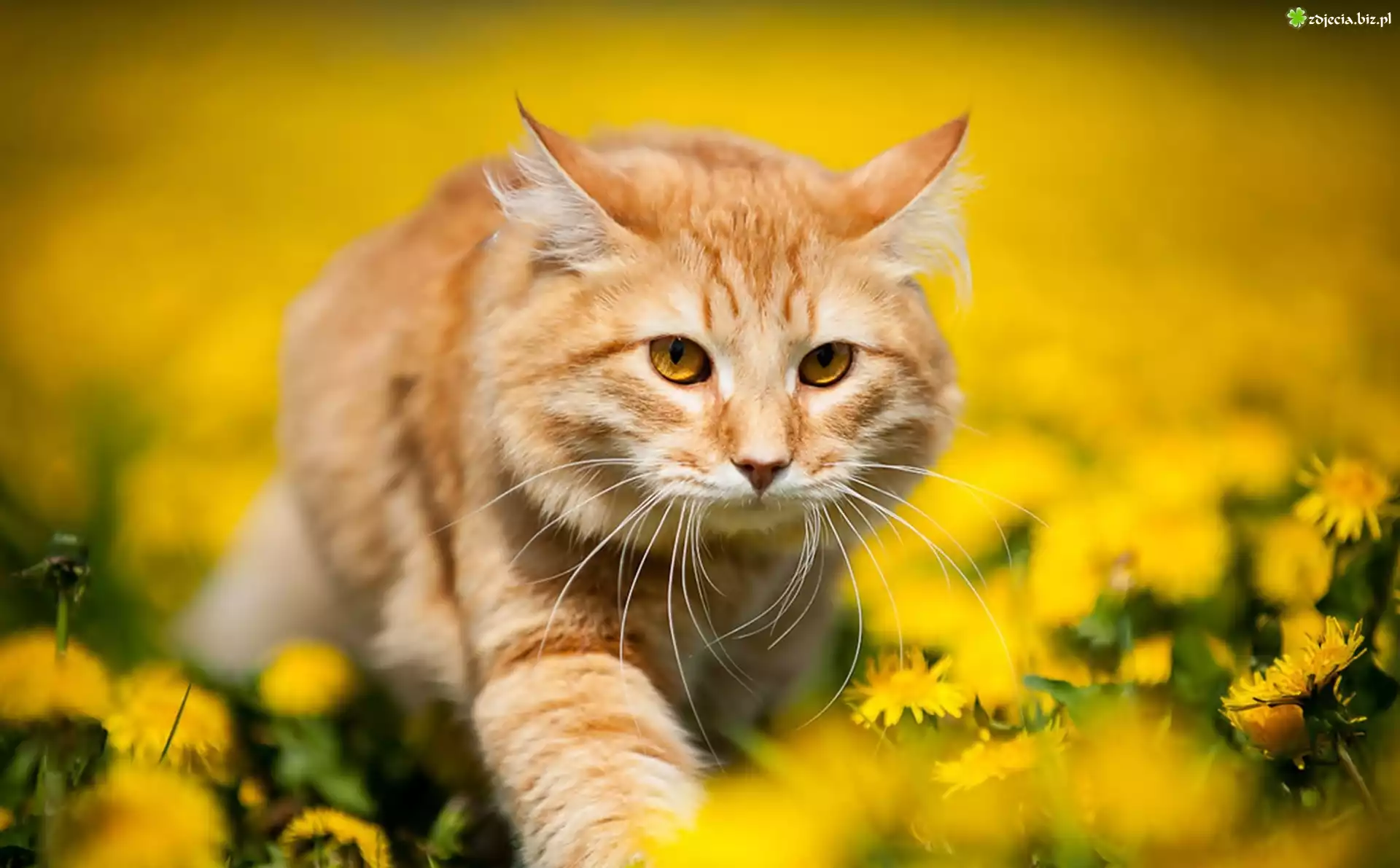 Zdjęcie Rudy, Kotek, Łąka, Mniszek