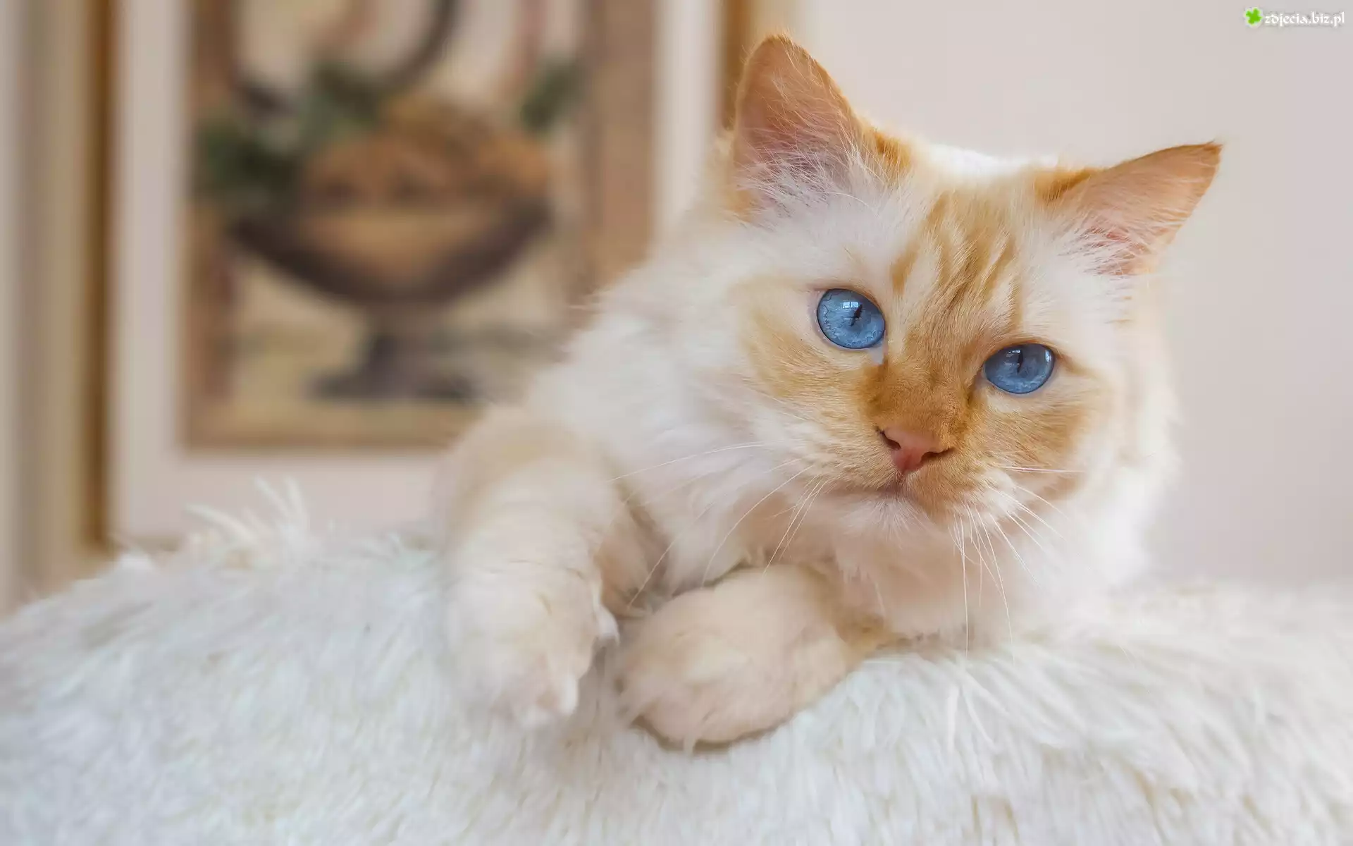 Zdjęcie Biało-rudy, Kot, Koc, Zbliżenie