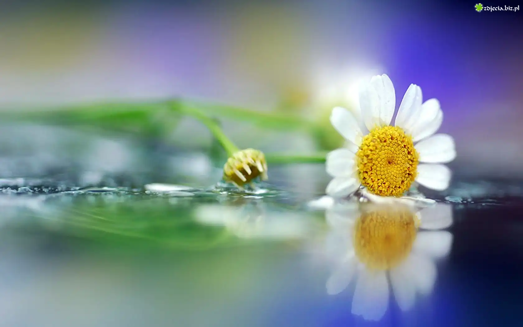 Zdjęcie Rumianek, Kwiatek, Pąk, Odbicie
