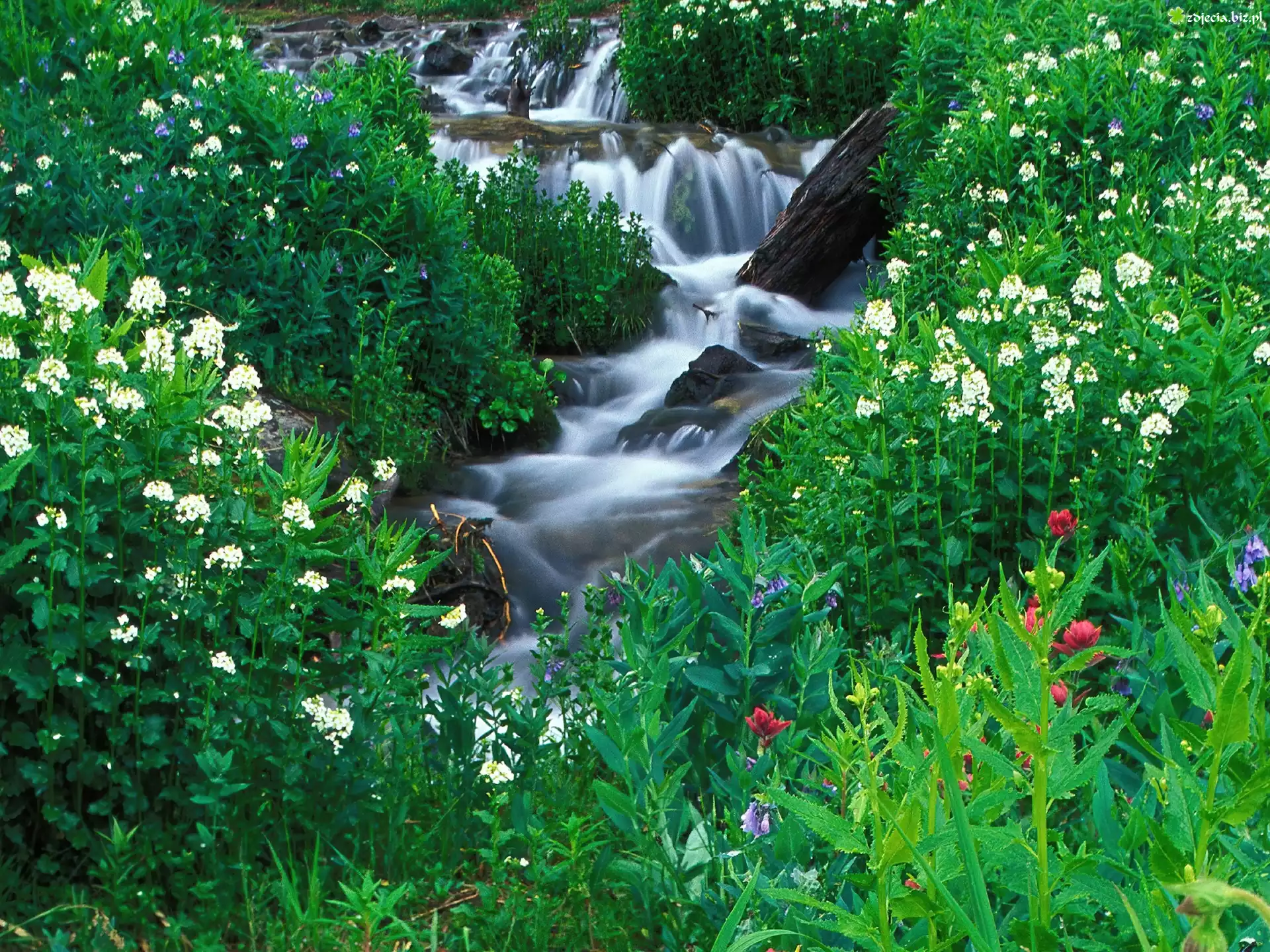 Zdjęcie Rwąca, Rzeczka, Kaskady, Kwiaty, Roślinność