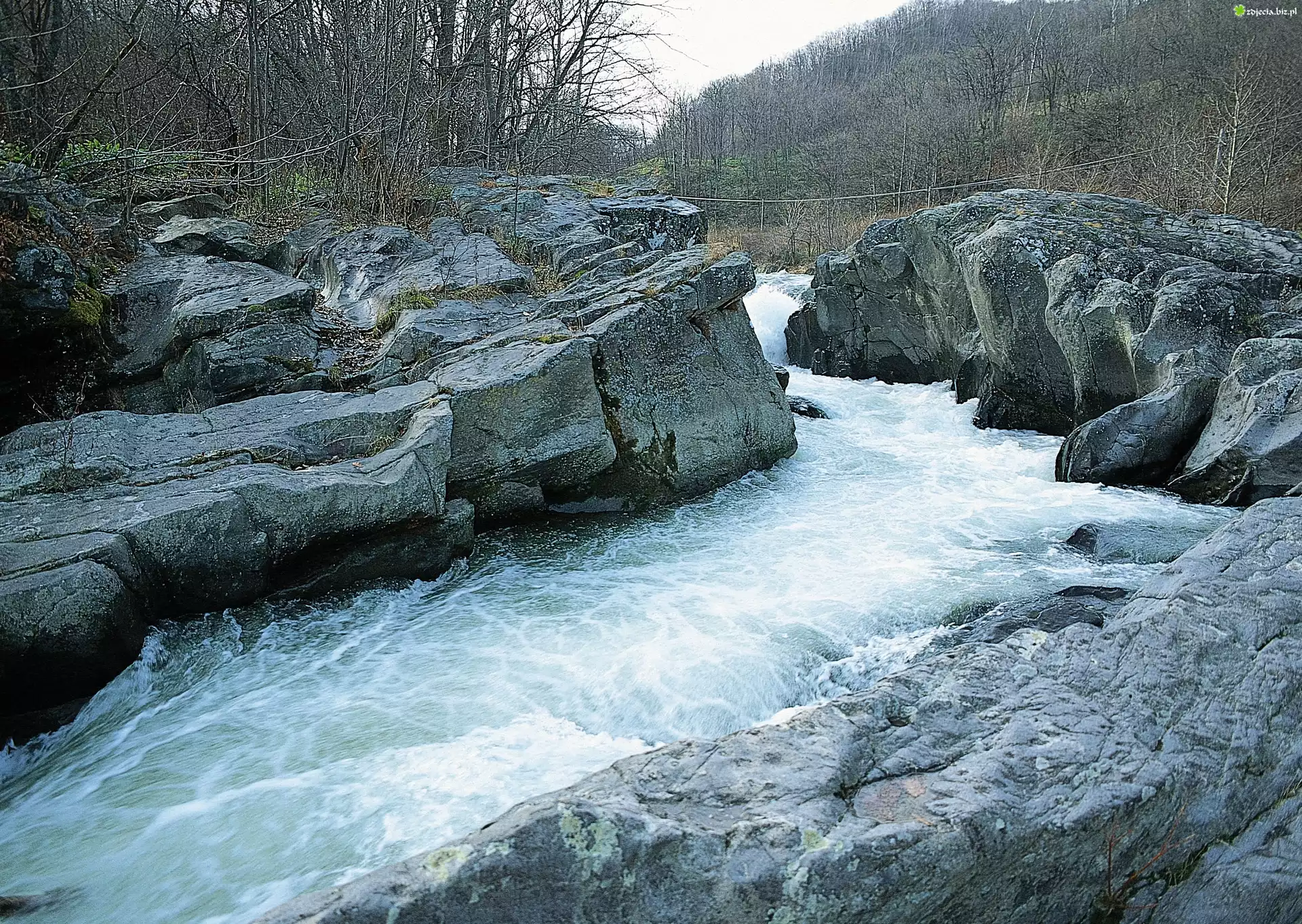 Zdjęcie Rwąca, Rzeka, Skały, Drzewa