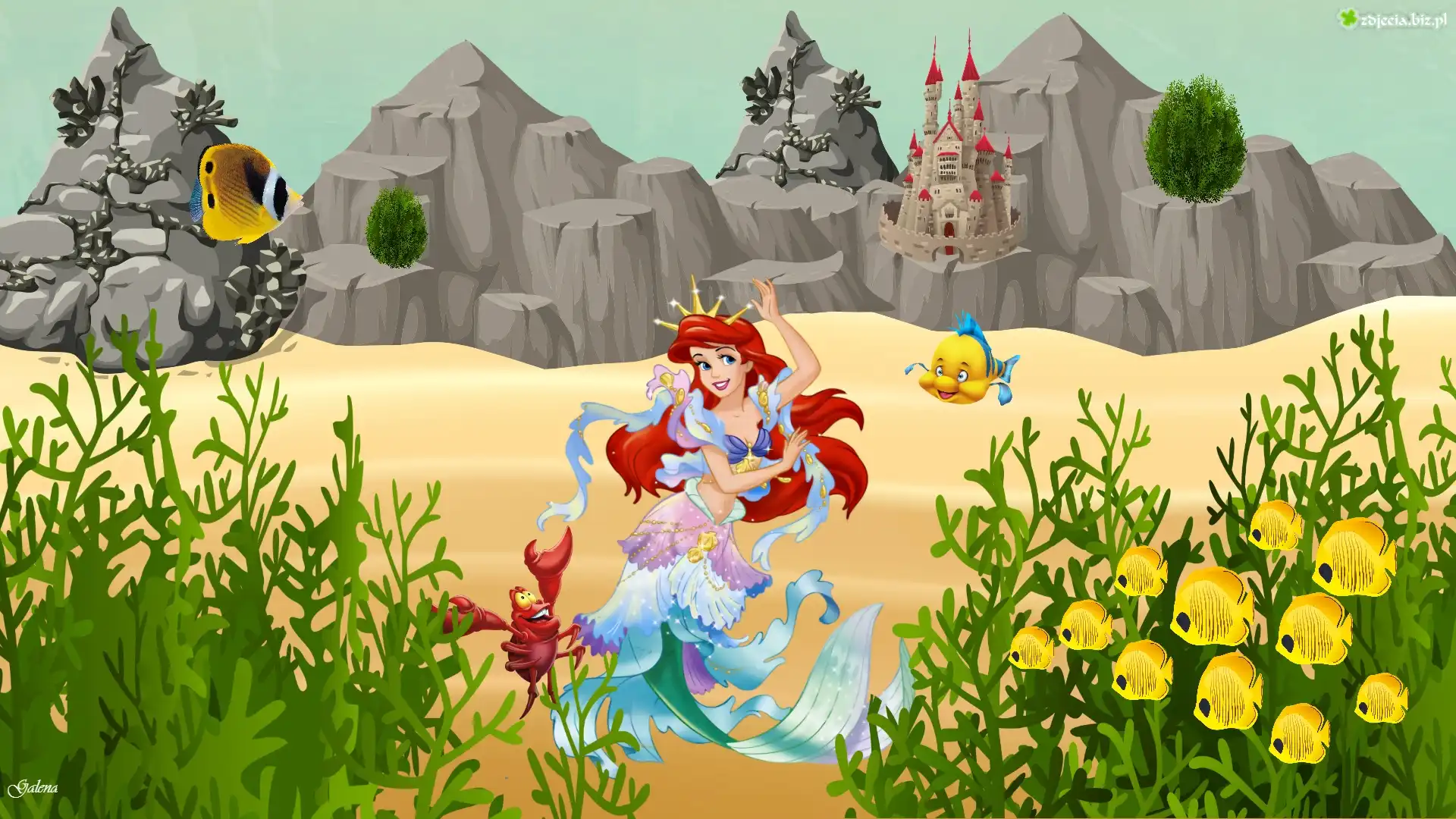 Zdjęcie Ocean, Ryby, Arielka, Zamek, Skały, Grafika, Dla dzieci