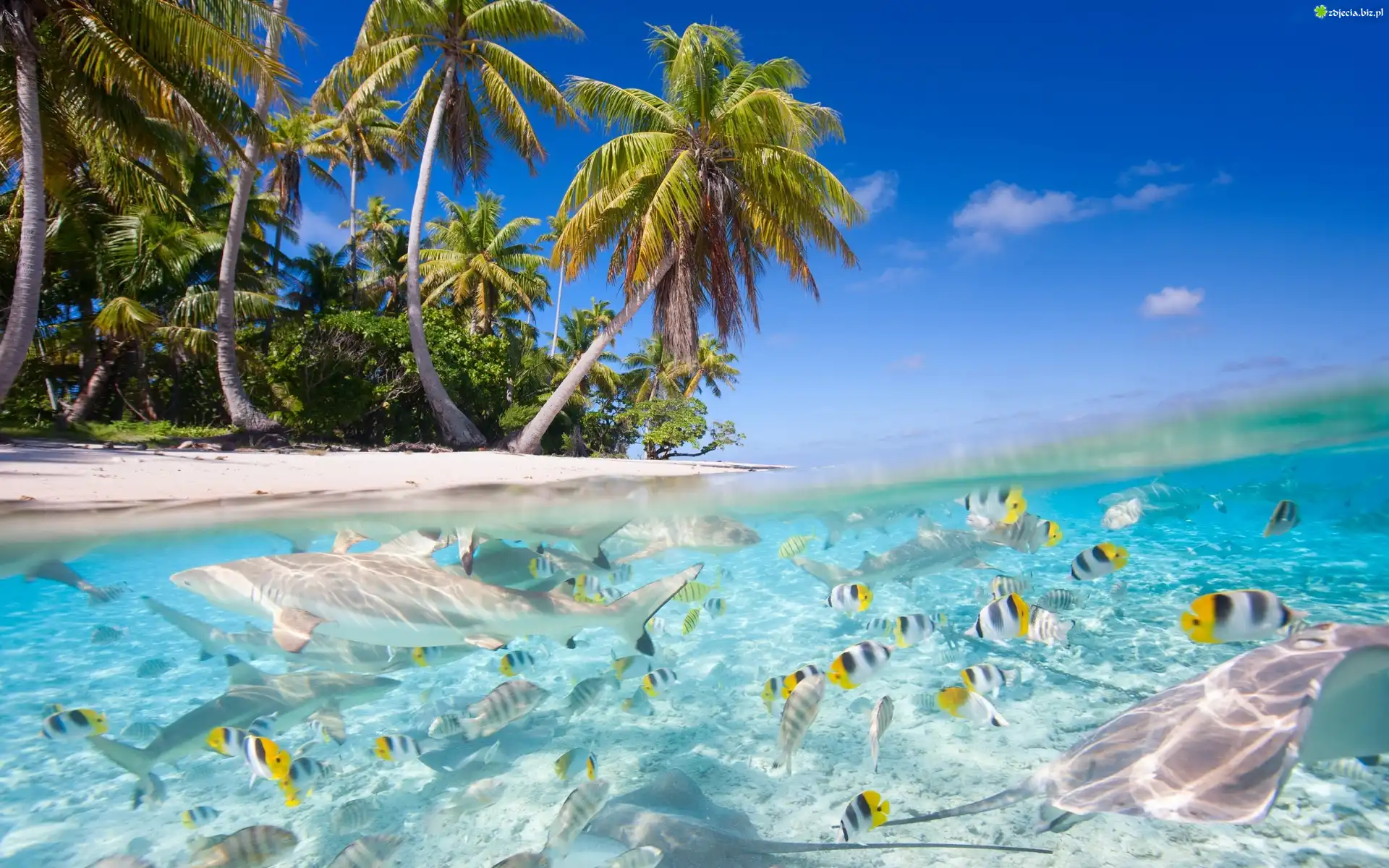 Zdjęcie Ryby, Morze, Niebo, Palmy, Plaża