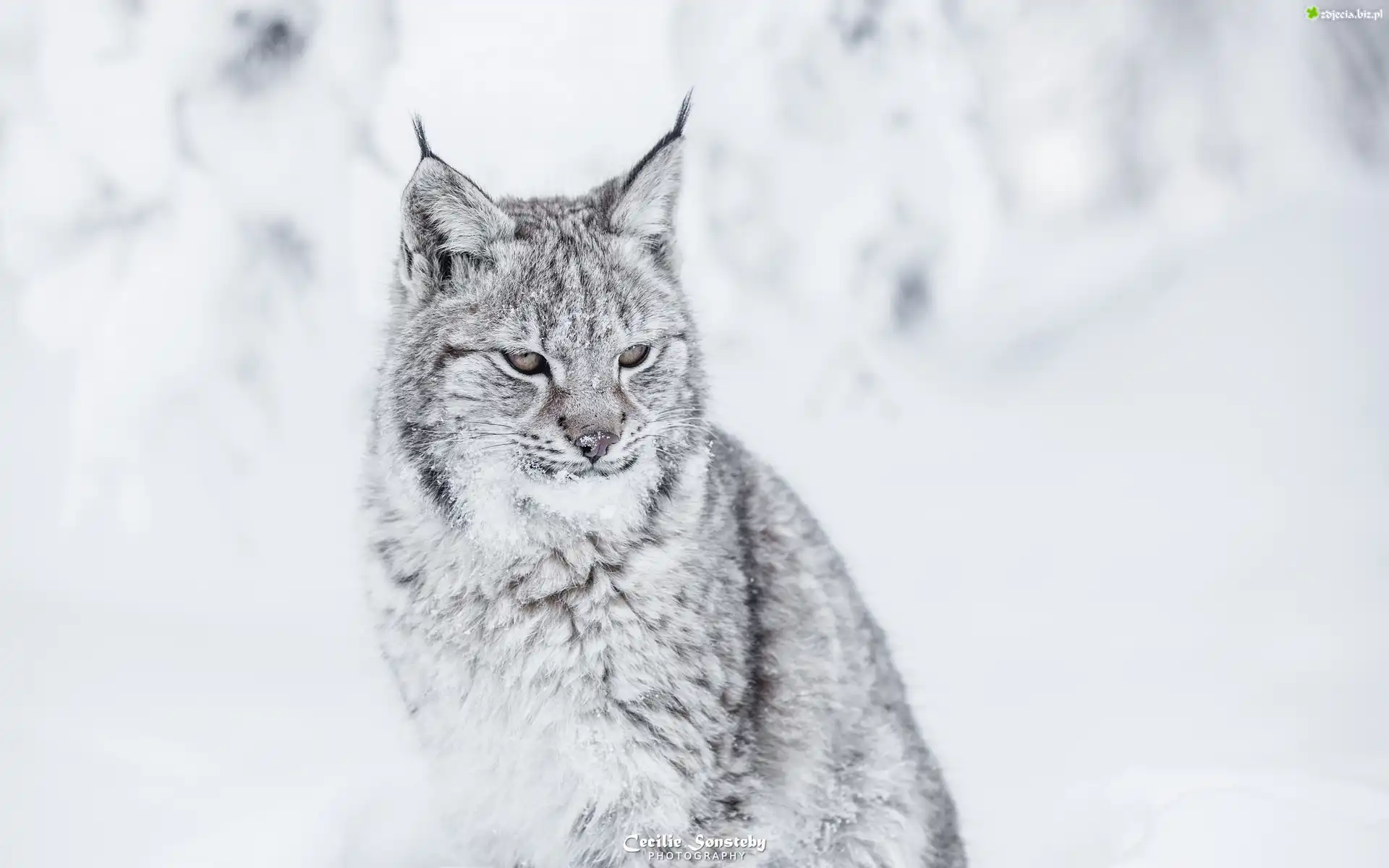 Zdjęcie Ryś, Zima, Śnieg, Ośnieżone, Futro