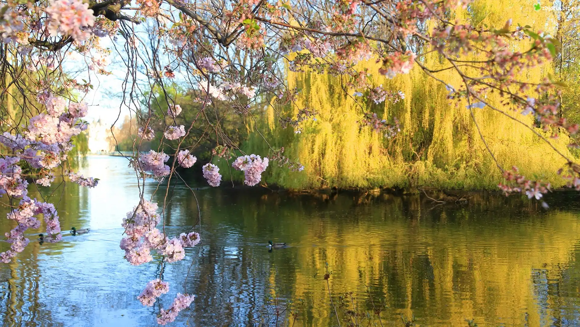 Zdjęcie Rzeczka, Kwitnące, Drzewo, Zarośla, Park