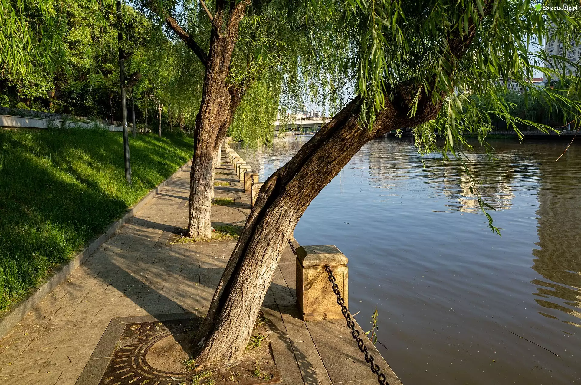 Zdjęcie, Rzeka, Drzewa, Bulwar