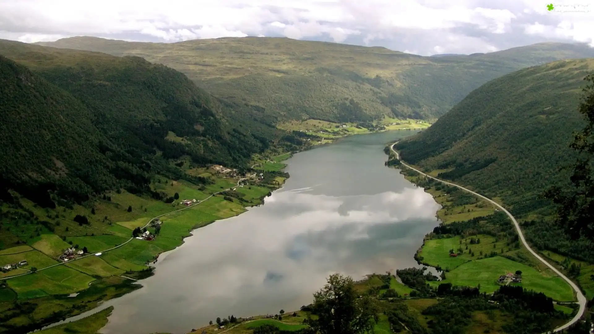Zdjęcie Rzeka, Wzgórza, Drogi, Zabudowania