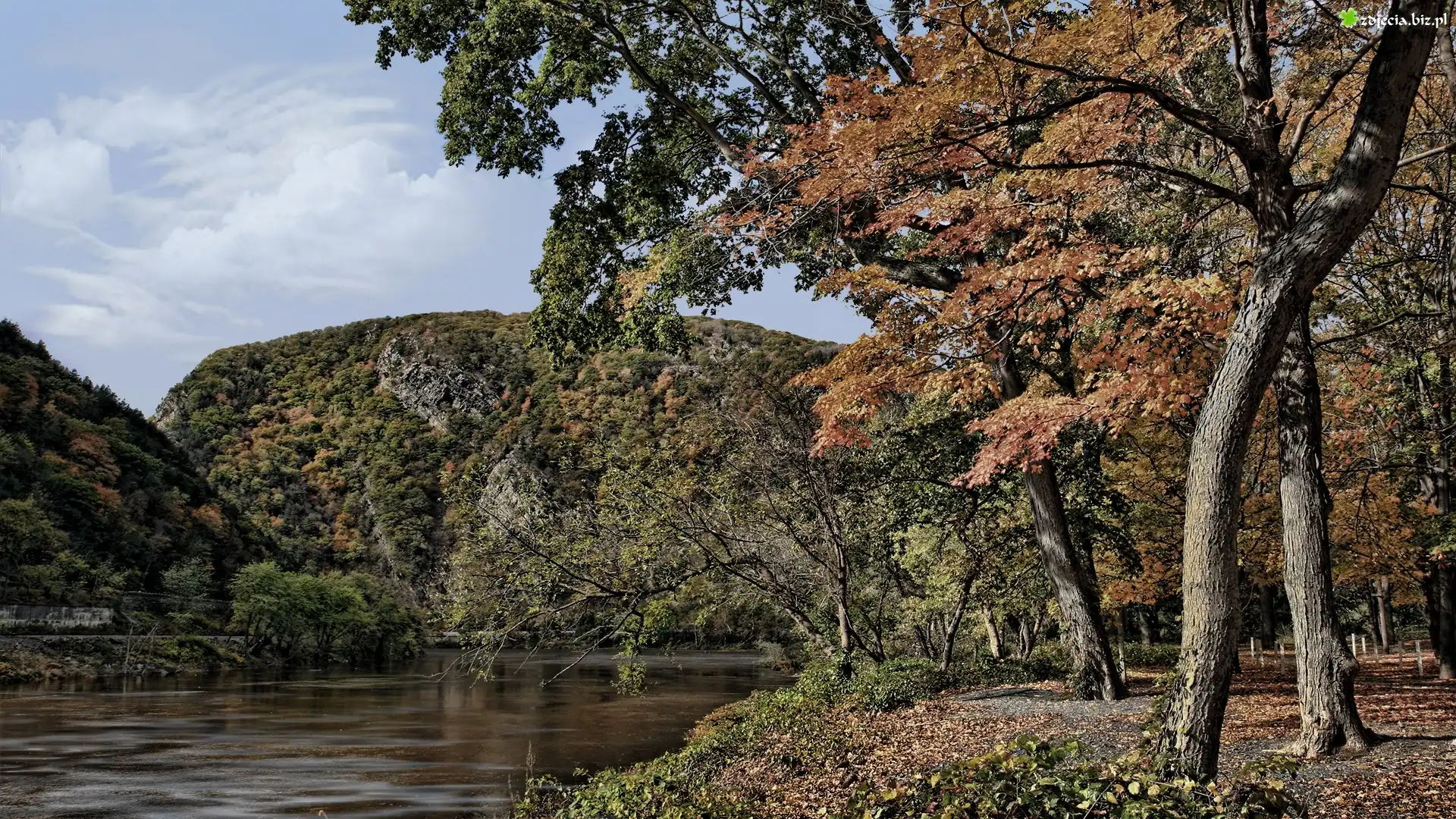 Zdjęcie Rzeka, Góry, Drzewa, Jesień