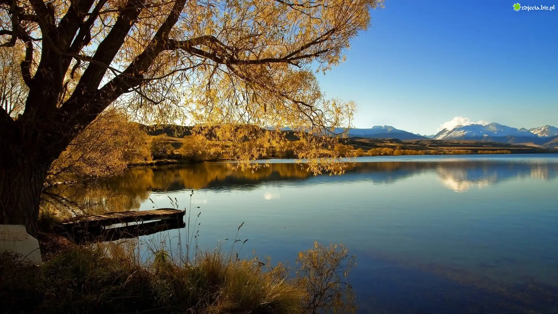 Zdjęcie Rzeka, Góry, Drzewa, Pomost
