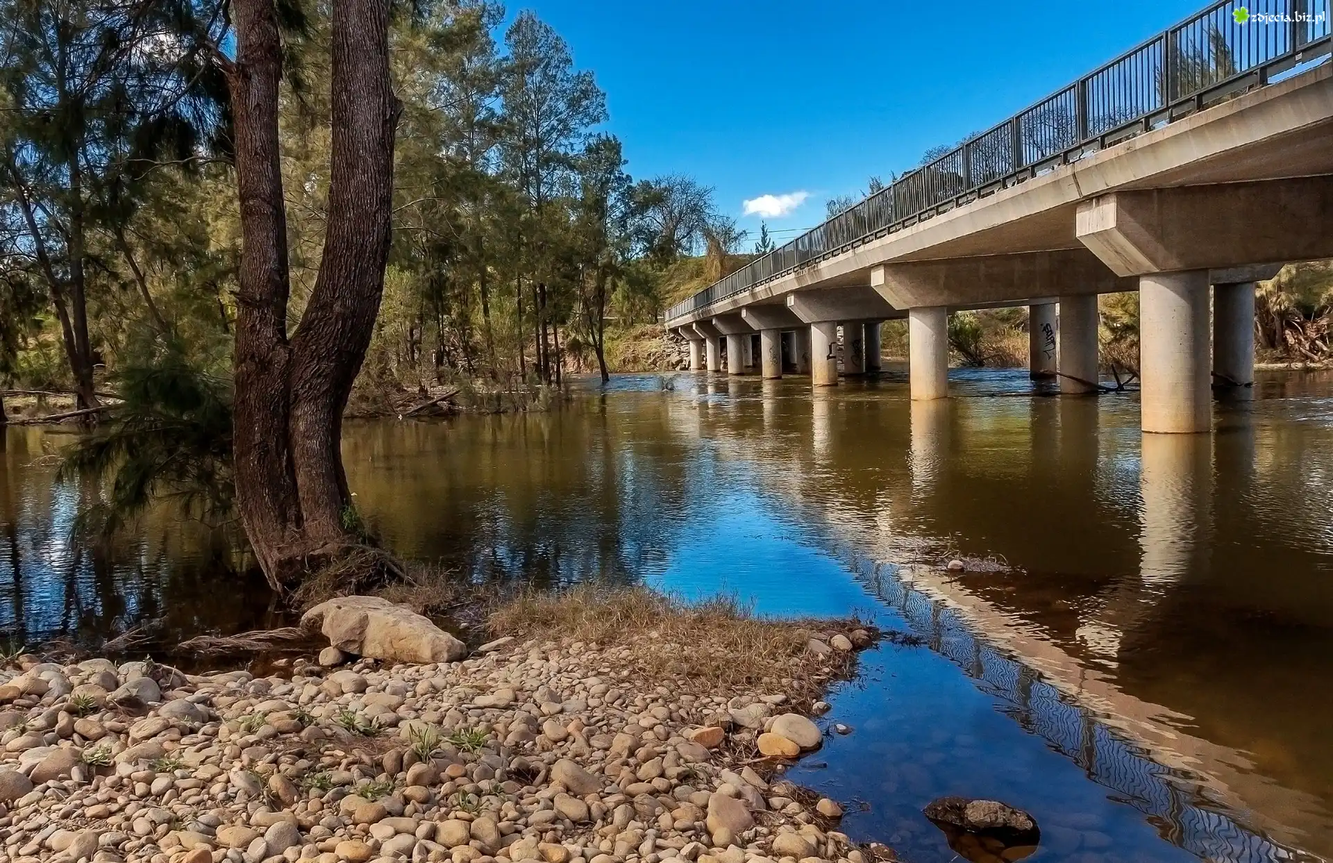 Zdjęcie, Rzeka, Most, Drzewa, Kamienie