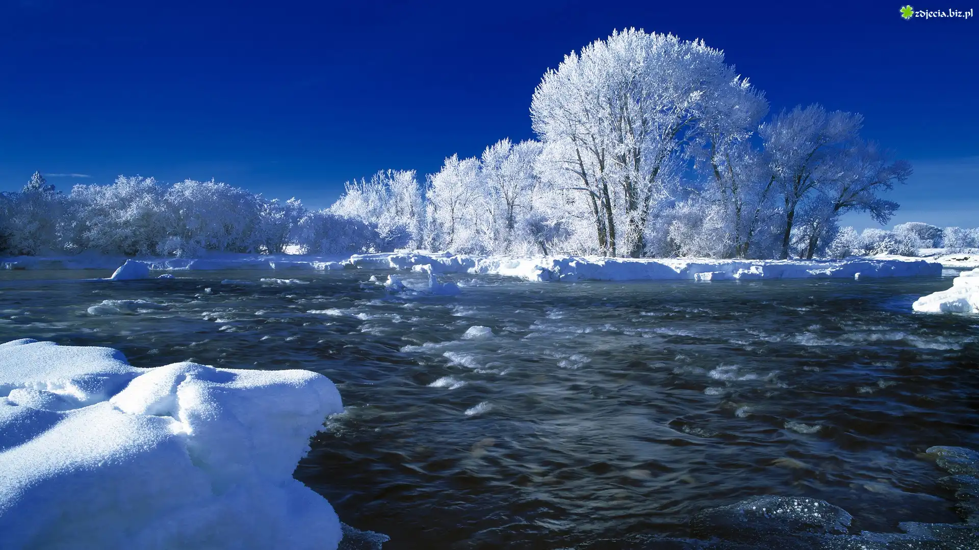 Zdjęcie Rzeka, Ośnieżone, Drzewa, Zima