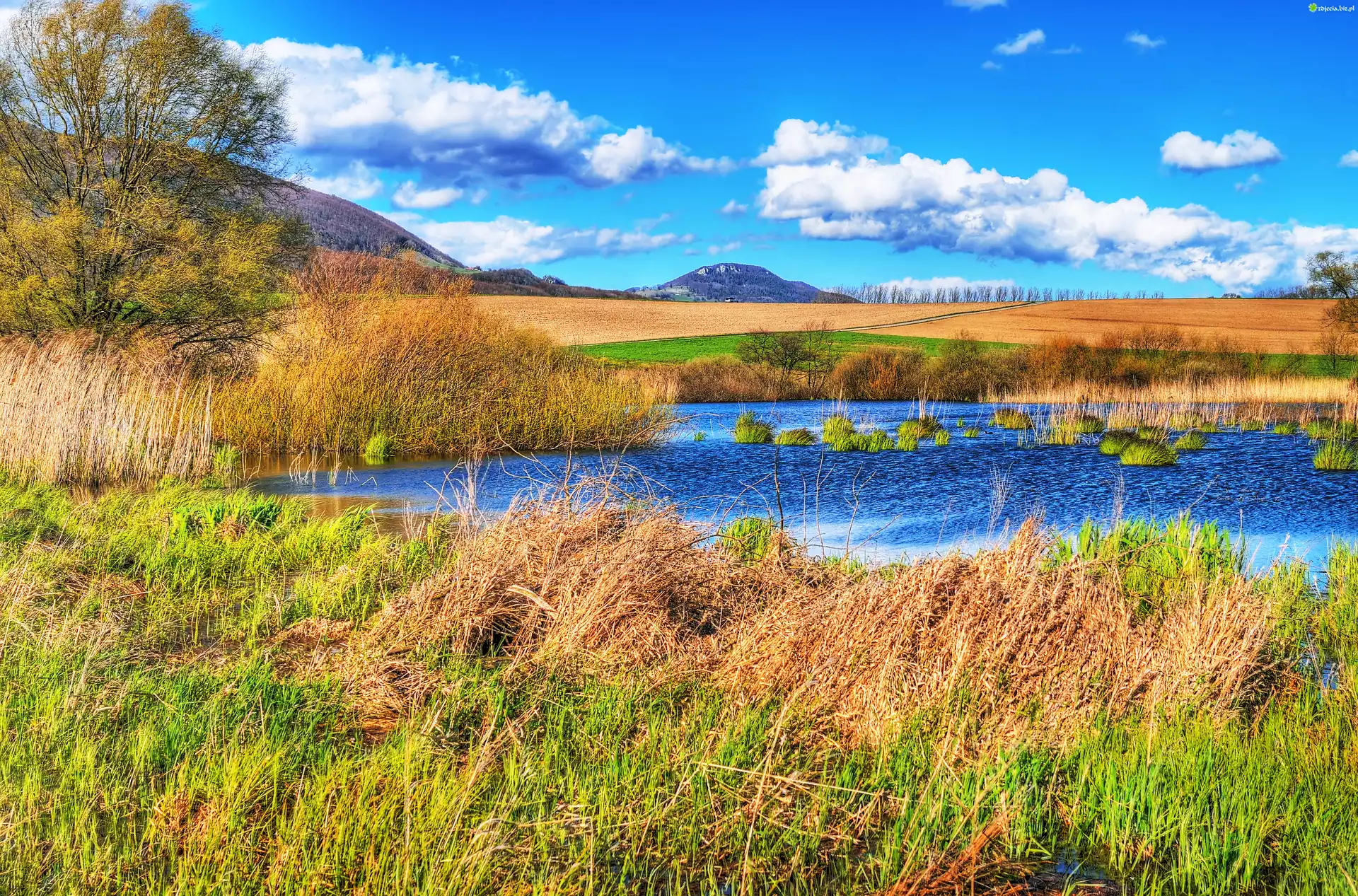 Zdjęcie, Rzeka, Pola, Łąki, Góry, Jesień