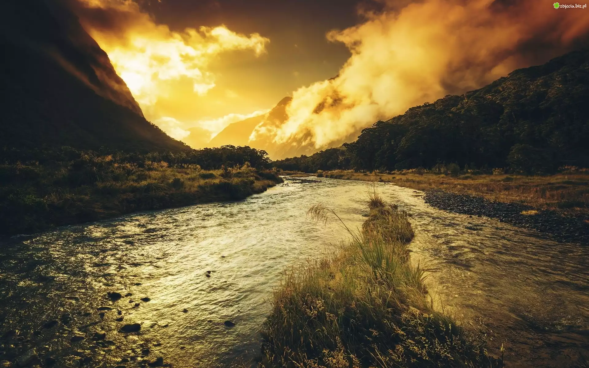 Zdjęcie Góry, Rzeka, Chmury