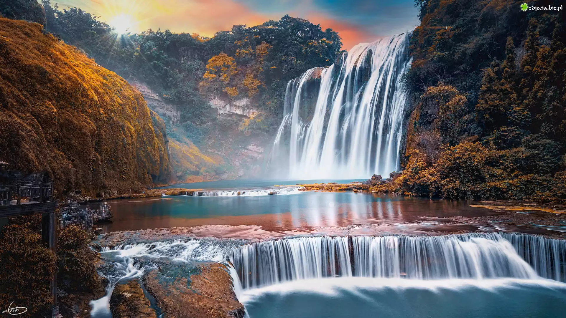 Zdjęcie Wodospad Huangguoshu, Rzeka Haishui He, Góry, Skały, Drzewa, Prowincja Guizhou, Chiny
