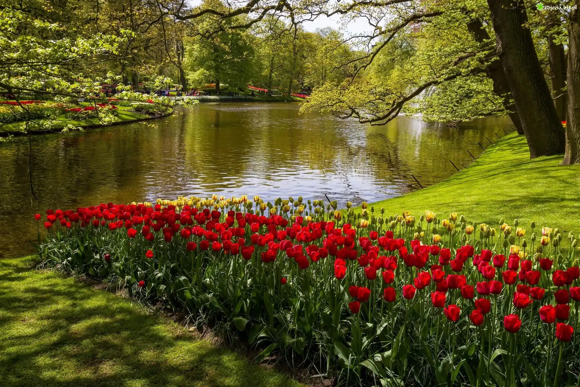 Zdjęcie Tulipany, Rzeka, Park, Kaukenhof, W, Lisse, Wiosna, Holandia